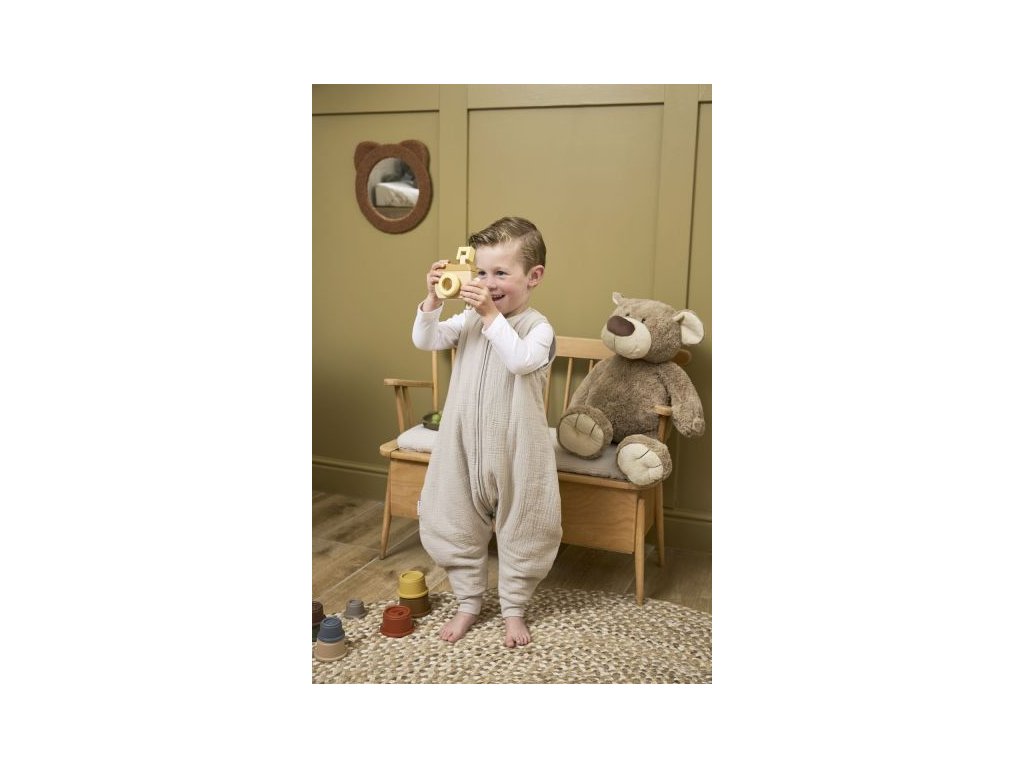 Pohodlný a prodyšný spací vak díky mušelínové tkanině s otvory pro nožičky.