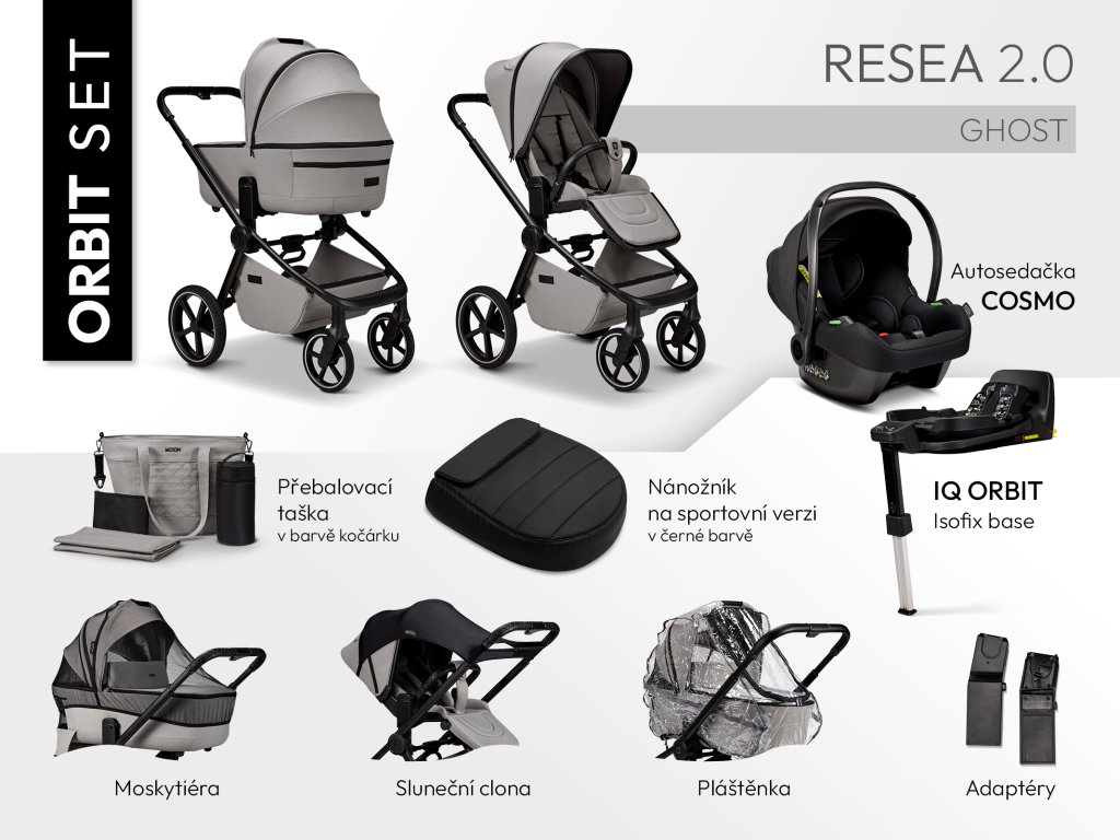 RESEA 2.0 ORBIT SETPro rodiče, kteří chtějí mít vše potřebné pohromadě, je k dispozici ORBIT SET, který kromě samotného kočárku obsahuje také:Bohaté příslušenství v ceně: