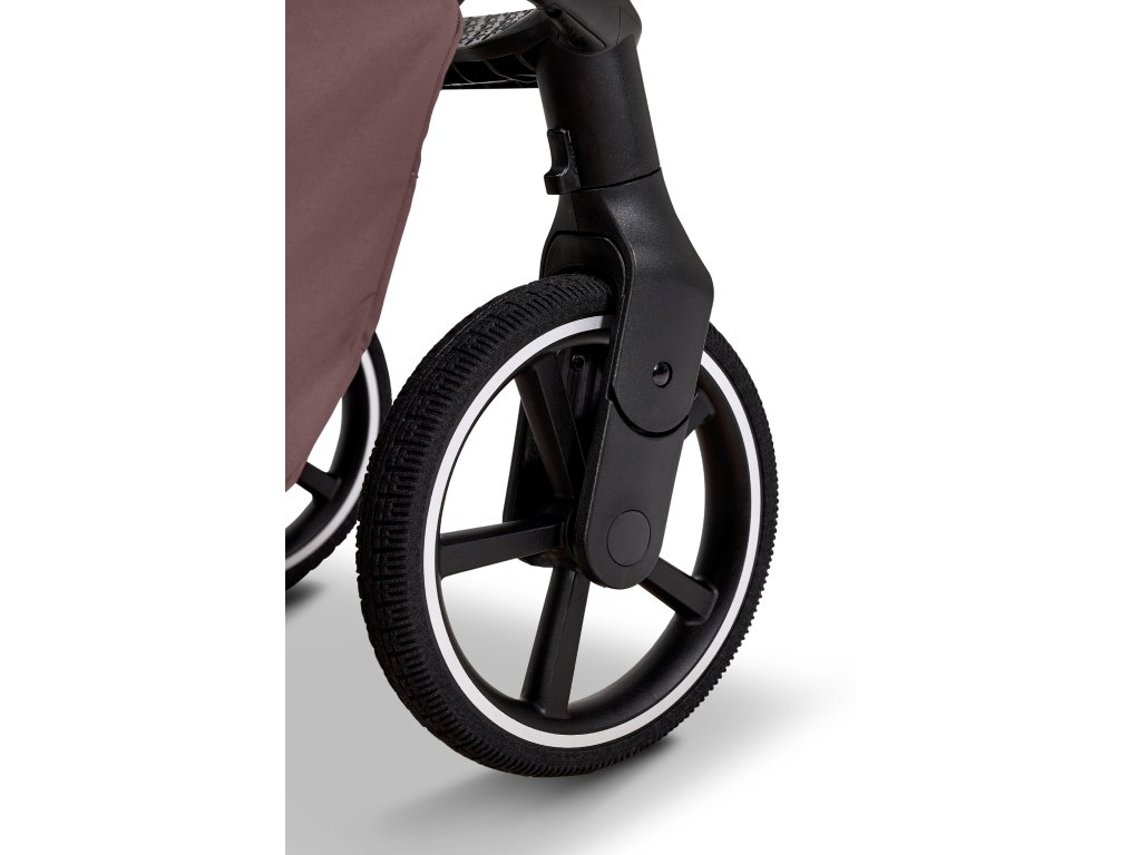 Plynulá jízda díky velkým, lehkým kolům – kočárek je skvělý i na nerovném terénu, což z něj dělá ideálního společníka na procházky v městských i přírodních prostředích.