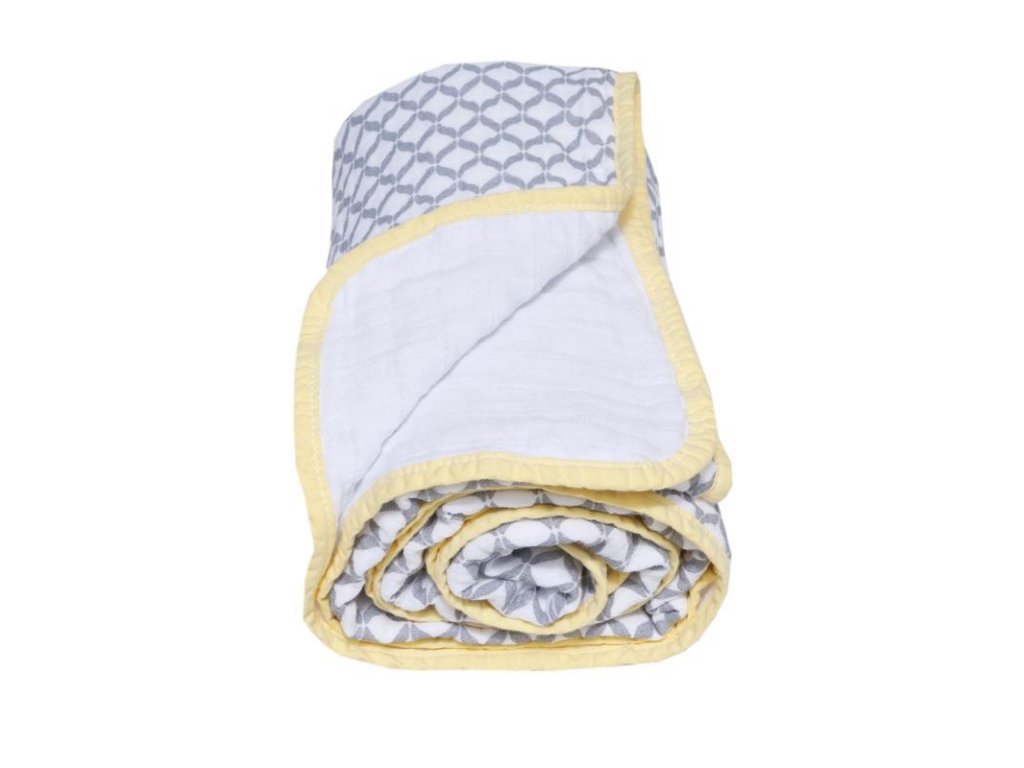 - dve vrstvy jemného bavlneného mušelínu dodávajú deke príjemnú jemnosť a dopĺňa ju kontrastný lem