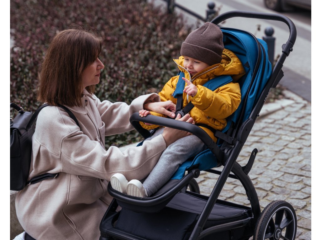 - päťbodové bezpečnostné pásy pre bezpečnú jazdu s dieťaťom