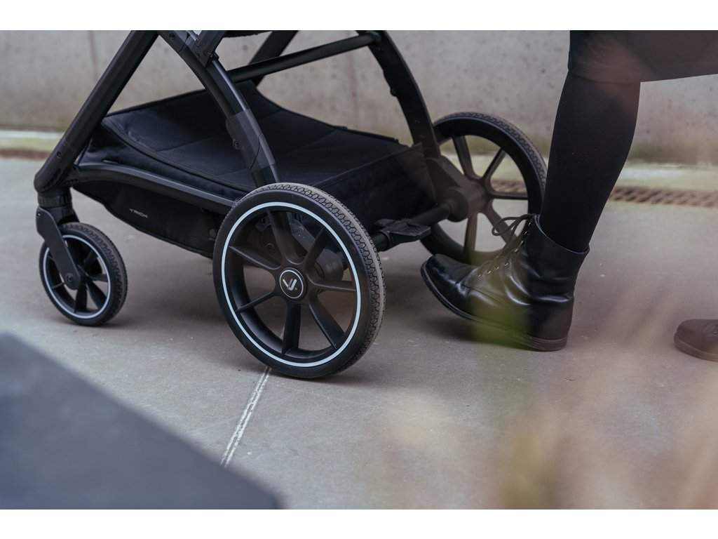 Trick je vybavený veľkými, gélovými, bezúdržbovými kolesami a prídavným zimným fusakom. Kočík možno jedným pohybom zložiť dopredu aj dozadu.