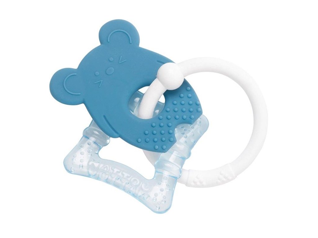 Silikónová hryzačka so štruktúrovaným povrchom a chladiacim prvkom je vhodná na masáž, osvieženie ďasien a na zmiernenie bolesti pri raste zúbkov.
