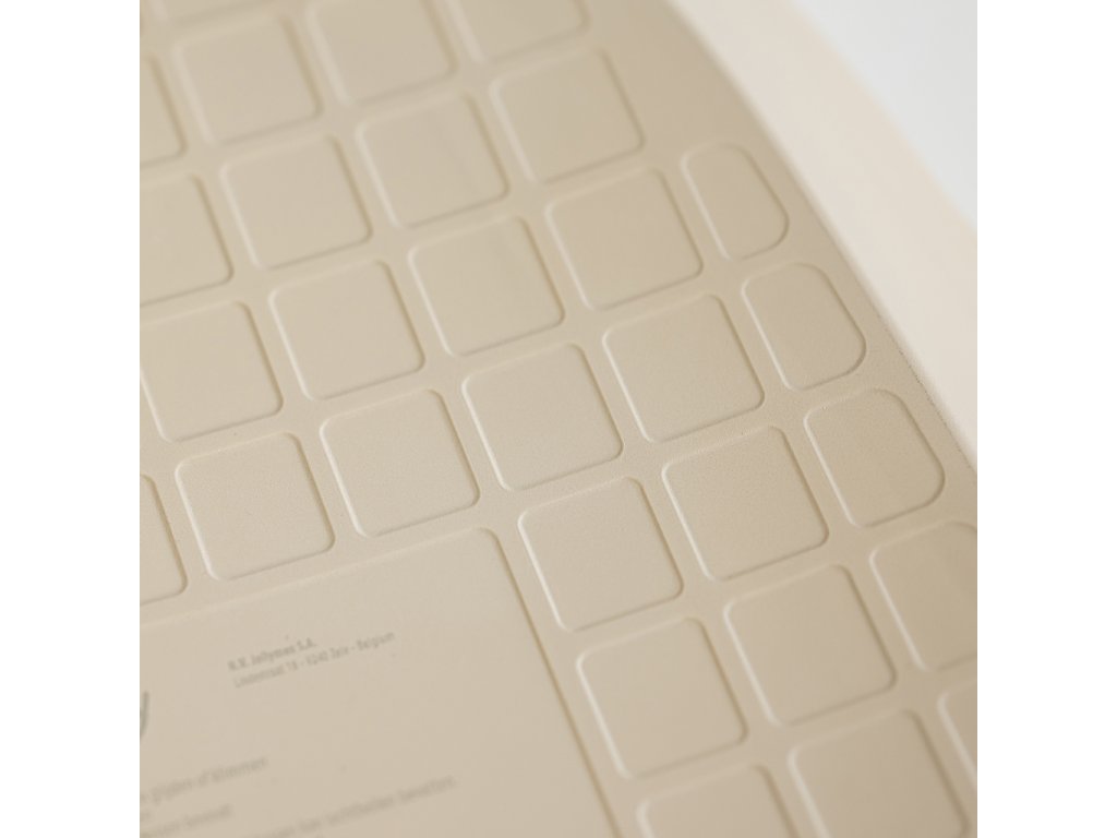 Podložka má zo spodnej strany povrch pripomínajúci štruktúru včelieho plástu. Váha dieťatka stačí na to, aby sa vzduch vytlačil a podložka sa prisaje na plochu, akonáhle dieťatko zdvihnete vákuum sa uvoľní a znovu je jednoduché podložku presunúť.
