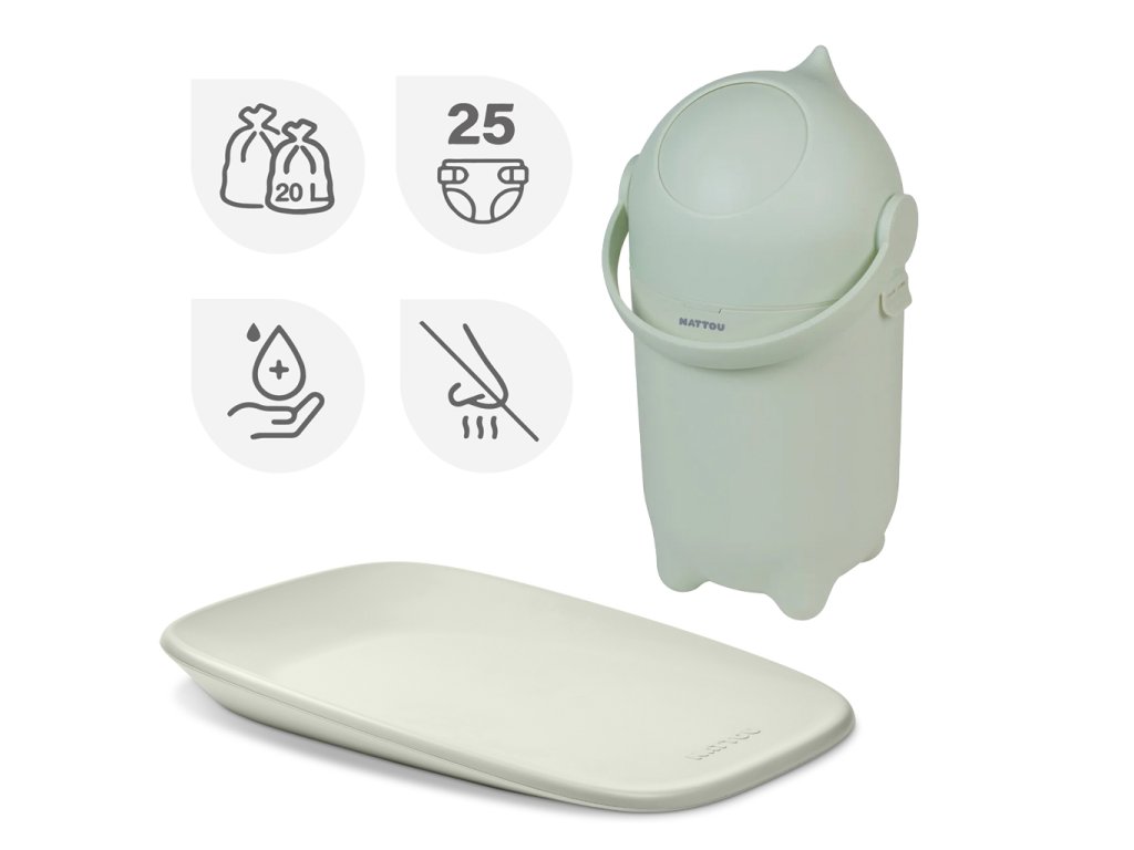 NATTOU Kôš na plienky Dropy a prebaľovacia podložka Softy Green 50x70 cm