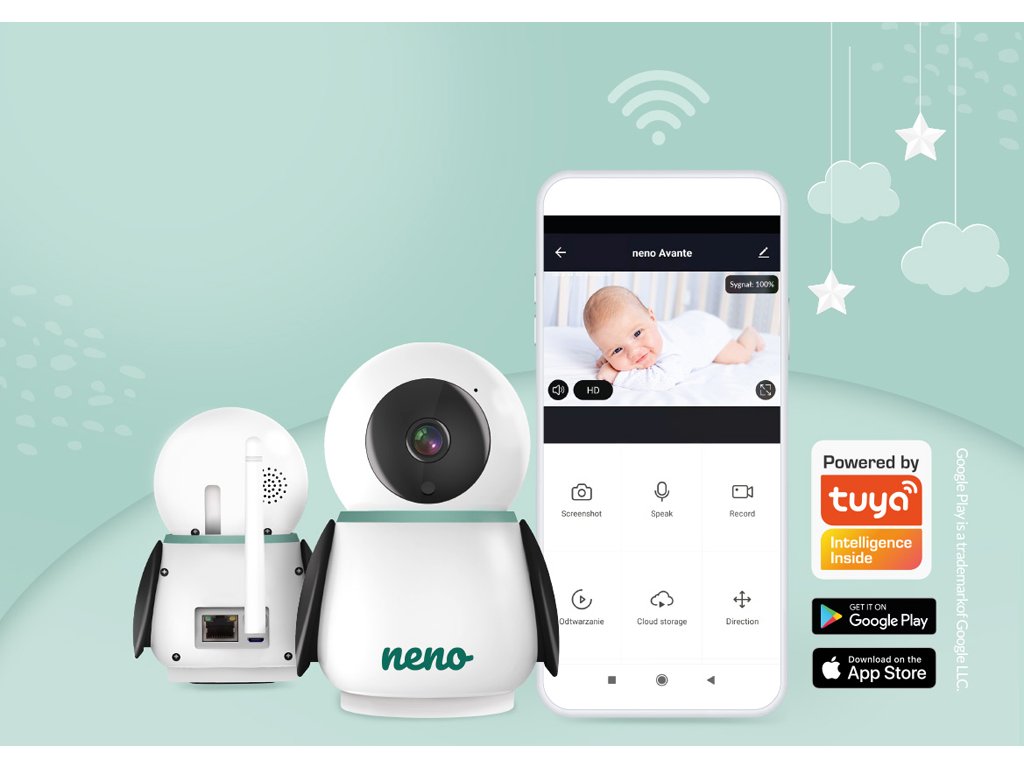 Neno Avante je inteligentná pestúnka v tvare tučniaka, ovládaná pomocou aplikácie Tuya vo vašom telefóne. Toto pohodlné riešenie Vám umožní pozorovať Vaše dieťa odkiaľkoľvek na zemi a jediné, čo potrebujete je telefón s prístupom k internetu. Zariadenie je vybavené pohyblivou hlavou, ktorá umožňuje pozorovanie dieťaťa v rozsahu 355 stupňov horizontálne a 90 stupňov vertikálne.