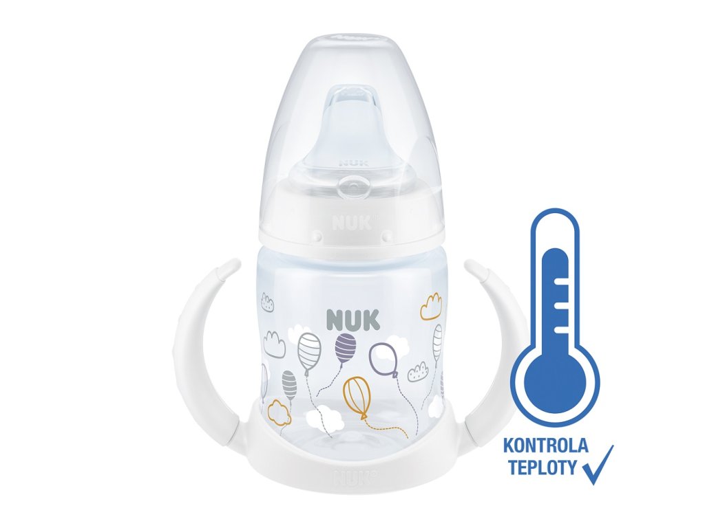 Fľaštička na učenie značky NUK má extra široké a mäkký náustok, ktoré zaručuje prirodzený pocit pitie hneď od začiatku. Uľahčí tak deťom prechod z dojčenia na fľašku. Fľaštička je určená pre deti od 6 do 18 mesiacov. Indikátor kontroly teploty - modrá farba sa zmení na bielu, ak je obsah príliš horúci.