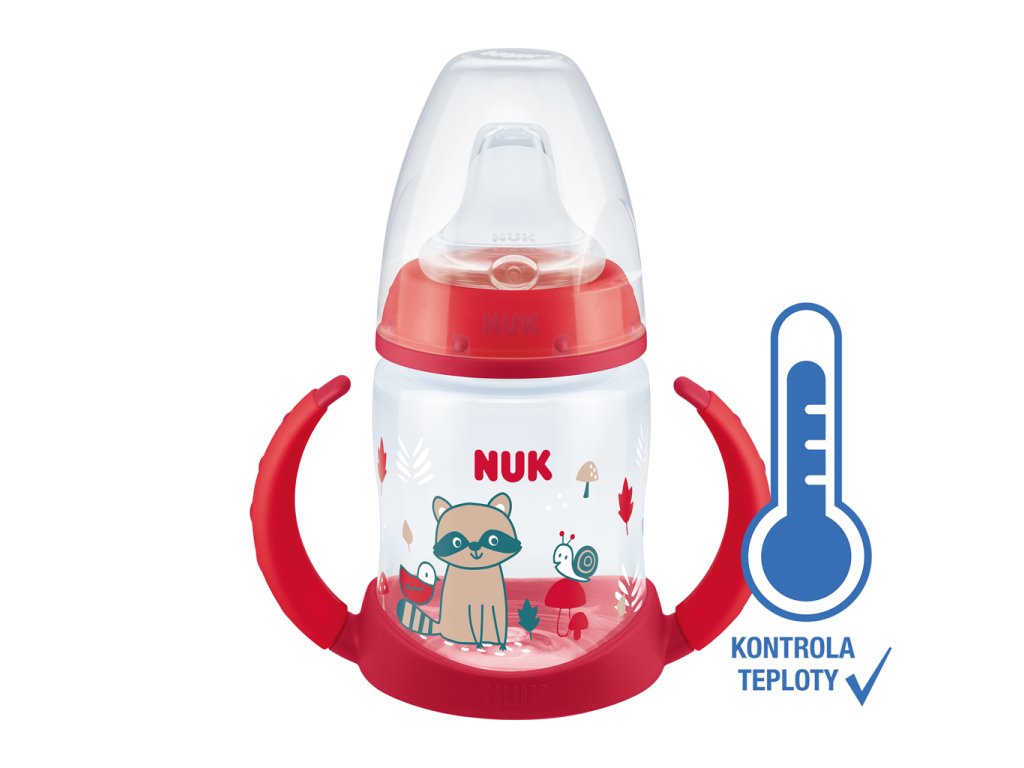 Detská fľaška na učenie NUK First Choice ukáže, keď má obsah fľašky správnu teplotu – máte tak istotu, že nápoj nie je príliš horúci. Ak je nápoj príliš horúci, modrá farba indikátora sa zmení na bielu. Tekutina by mala mať telesnú teplotu (37 °C = stredne modrý odtieň).