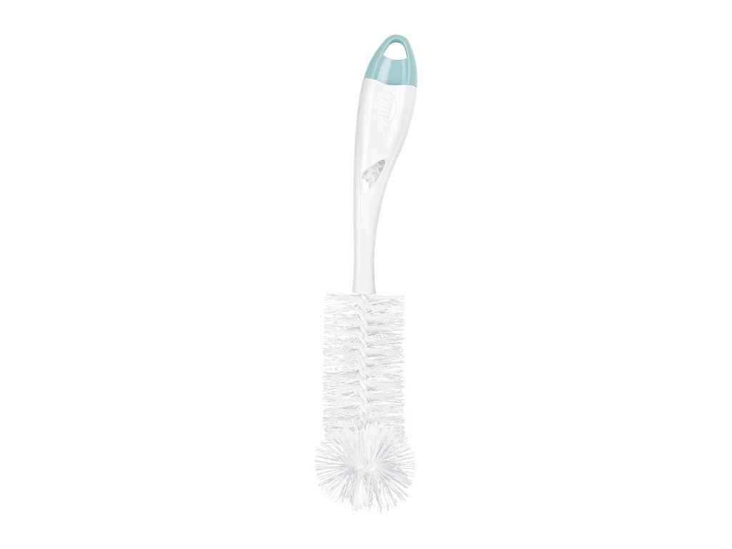 Flexibilný profil kefky a tvrdé, pevné štetiny zaistia dôkladné prečistenie fliaš a cumlíkov na fľašu. Praktické: kefka, určená pre cumlíky na fľašu, je umiestnená v rukoväti veľkej kefy, takže vždy viete, kde ju máte hľadať. Otvor v rukoväti kefy na fľaše je určený na ventiláciu. Kefa má praktické pútko na zavesenie.