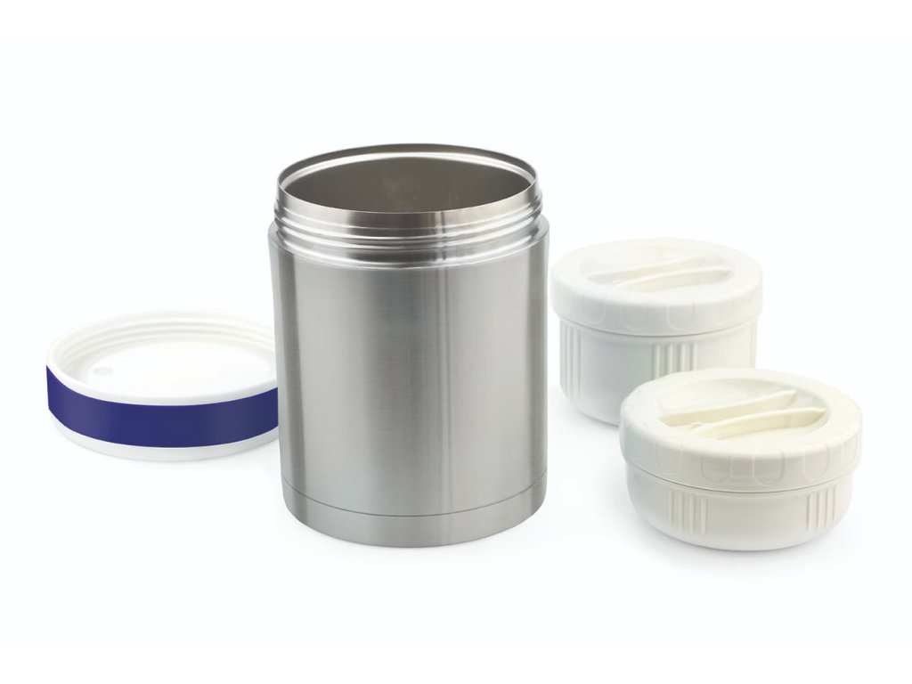 Súčasťou termo nádoby sú dve nepriepustné nádobky vo veľkosti 250 ml a 380 ml.