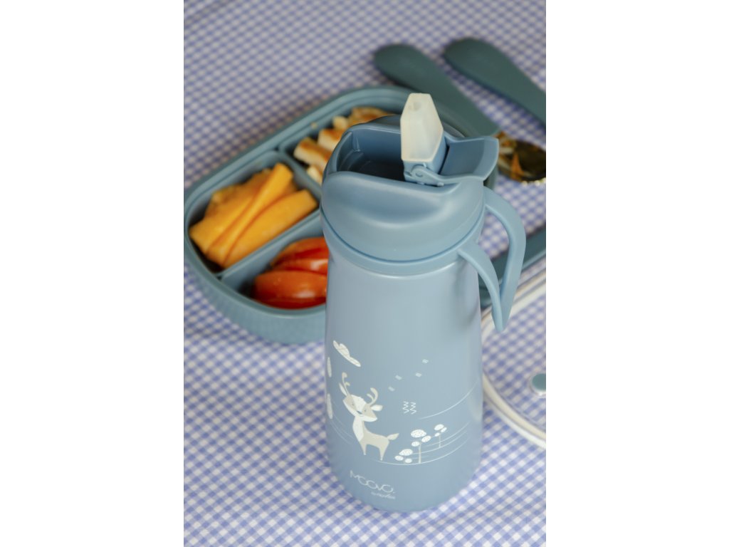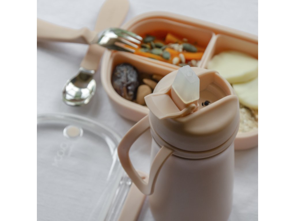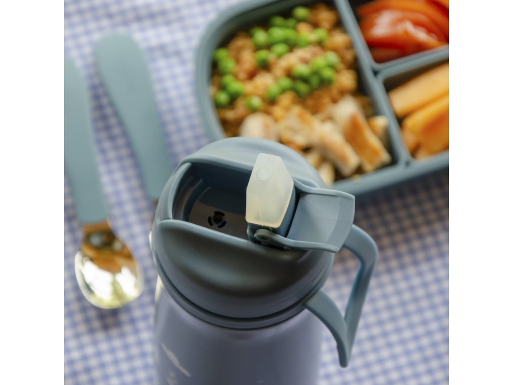 Termoska z nerezovej ocele s náustkom, vďaka tomu je vhodná pre deti už od 6 mesiacov. Udrží svoj obsah studený až 24 hodín alebo teplý až 12 hodín. Tesniace viečko udrží tekutinu v termoske a praktické pútko uľahčí prenášanie a manipuláciu s termoskou.