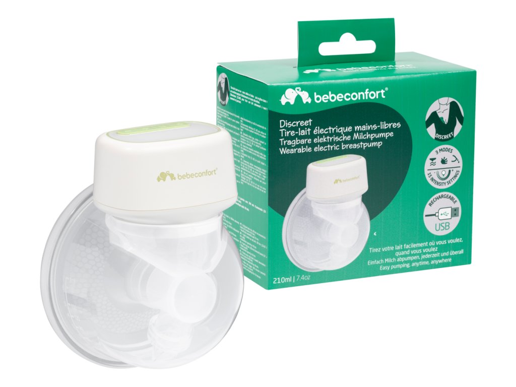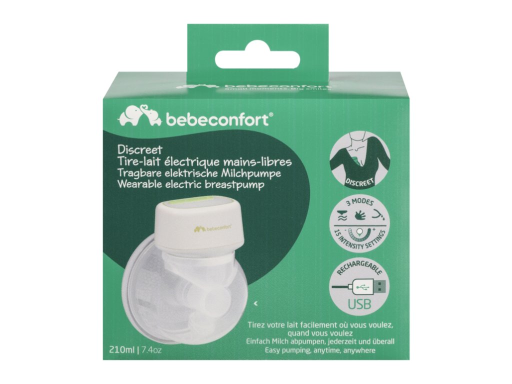 Elektrická nositeľná odsávačka materského mlieka Bebeconfort Discreet vám umožní pokračovať v dojčení bez toho, aby ste museli prerušiť každodenné aktivity. Či už sa vraciate do práce, staráte sa o domácnosť alebo ste na cestách, táto odsávačka ponúka pohodlie a diskrétnosť – ľahko sa schová pod oblečenie a nijako neprekáža.