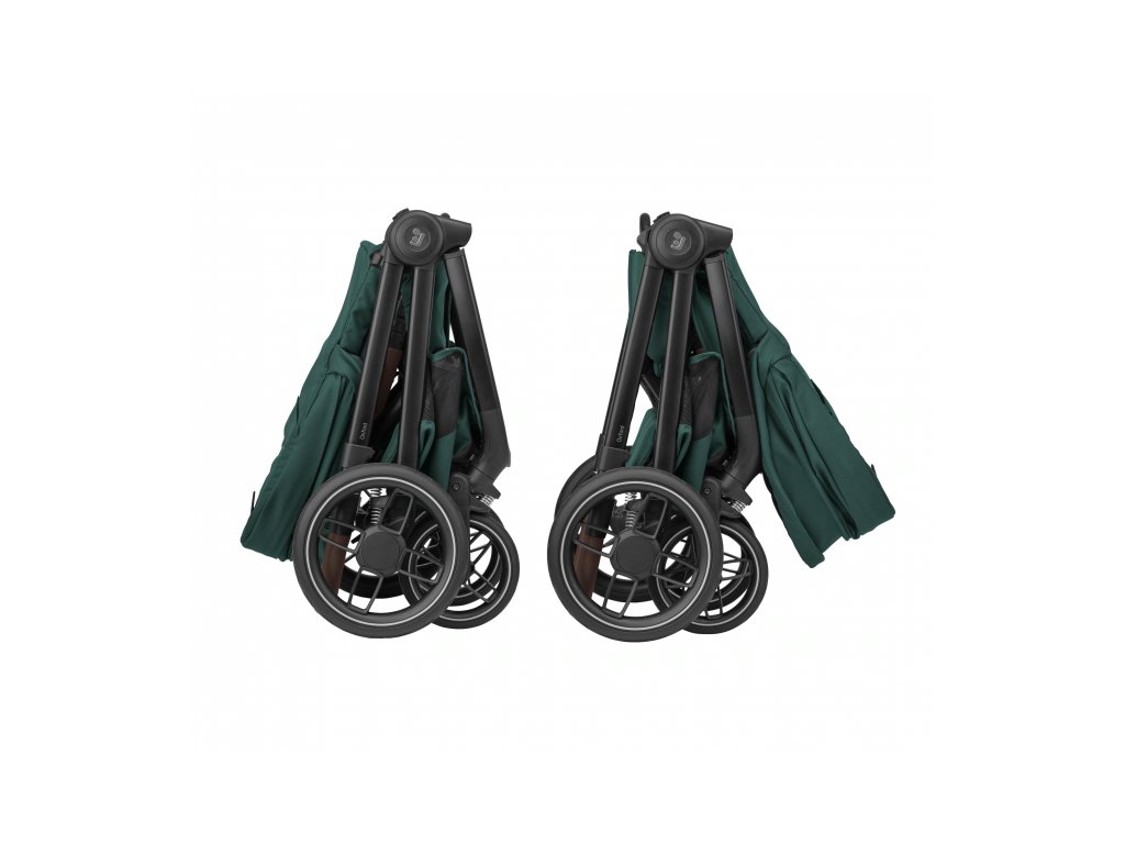 Po složení do kompaktního tvaru je možné kočárek postavit