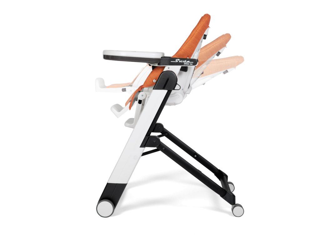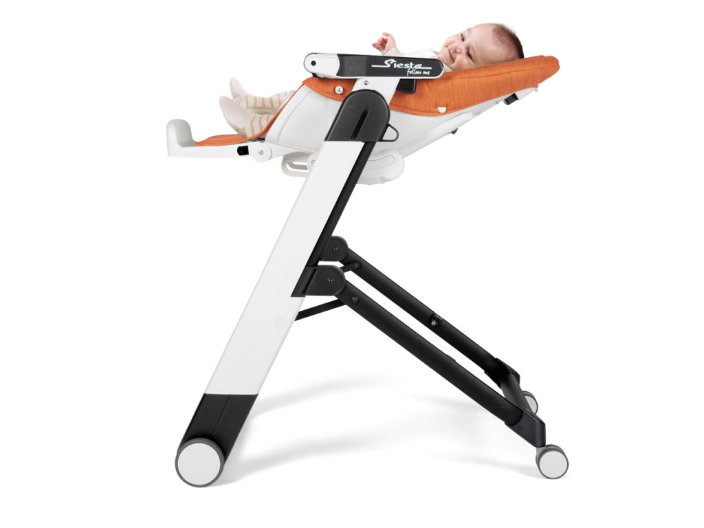 Vďaka 4 kolieskam a dômyselnému brzdovému systému STOP&GO je možné Siestu Follow Me ľahko presunúť napr. do inej miestnosti. Stolička sa ľahko rozkladá a skladá, po zložení je kompaktná a stojí úplne samostatne. Výškovo je nastaviteľná do 9 rôznych polôh. Opierku chrbta je možné nastaviť do 5 polôh a opierku nôh do 3 polôh. Predný dvojitý pultík je polohovateľný a odnímateľný. Naspodku je vybavený bezpečnostnou prepážkou, ktorá zabraňuje vykĺznutiu dieťaťa a jeho hornú časť s držiakom na fľašu je možné umývať v umývačke riadu