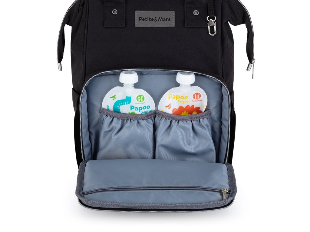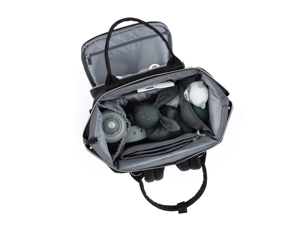 Tento pohodlný a organizačne premyslený batoh je vyrobený z kvalitných materiálov odolných voči vlhkosti. Má bočné popruhy na pripevnenie ku kočíku a hlavná priehradka sa zapína na dvojcestný zips. Veľké množstvo vreciek vrátane funkčných vreciek a jednoduchý prístup k obsahu vďaka bočnému otváraniu vám výrazne uľahčí balenie na výlet alebo prechádzku.