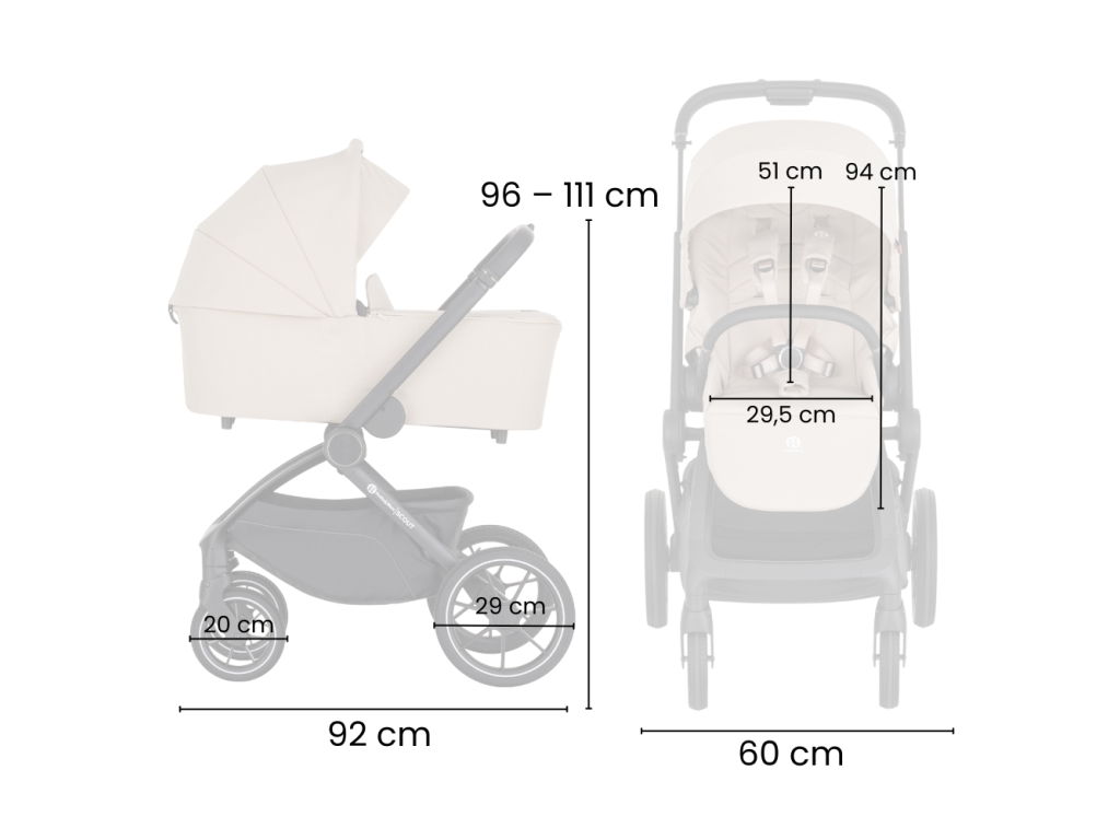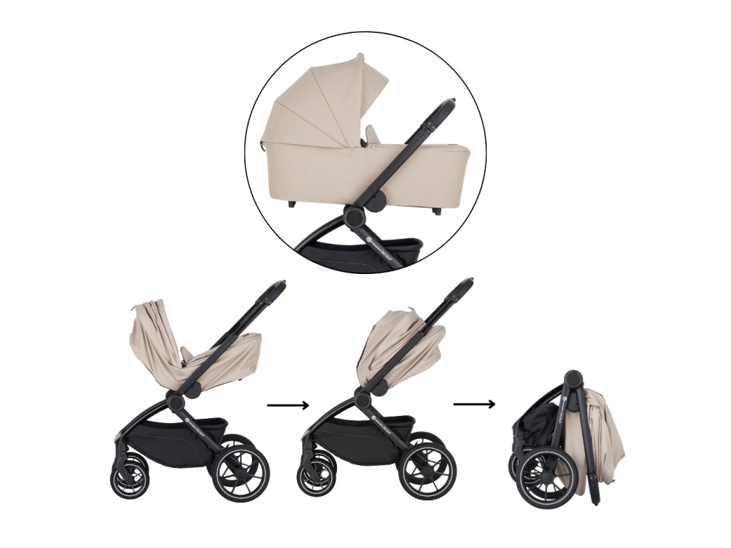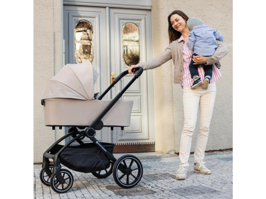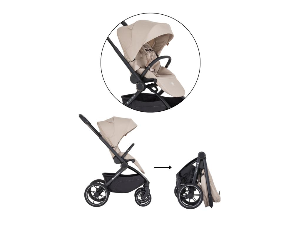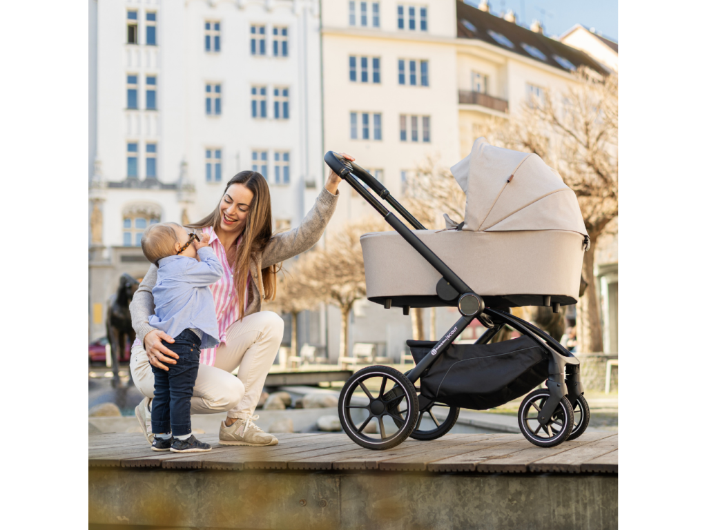 Vďaka jednoduchému skladaniu a premyslenému naklikávaciemu systému s poistkou zvládnete prechod medzi vaničkou a športovou časťou rýchlo a bezpečne. Konštrukcia je pevná, kočík sa výborne ovláda a v každodennom tempe oceníte aj jednoduchú manipuláciu. Veľké PU kolesá vpredu aj vzadu spolu s miernym odpružením zabezpečujú pohodlnú jazdu aj na nerovnejšom povrchu.
