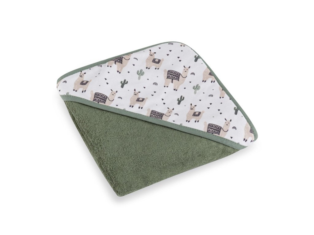 PETITE&MARS Osuška bambusová s kapucňou Loulou Lama Vibes 100 x 100 cm