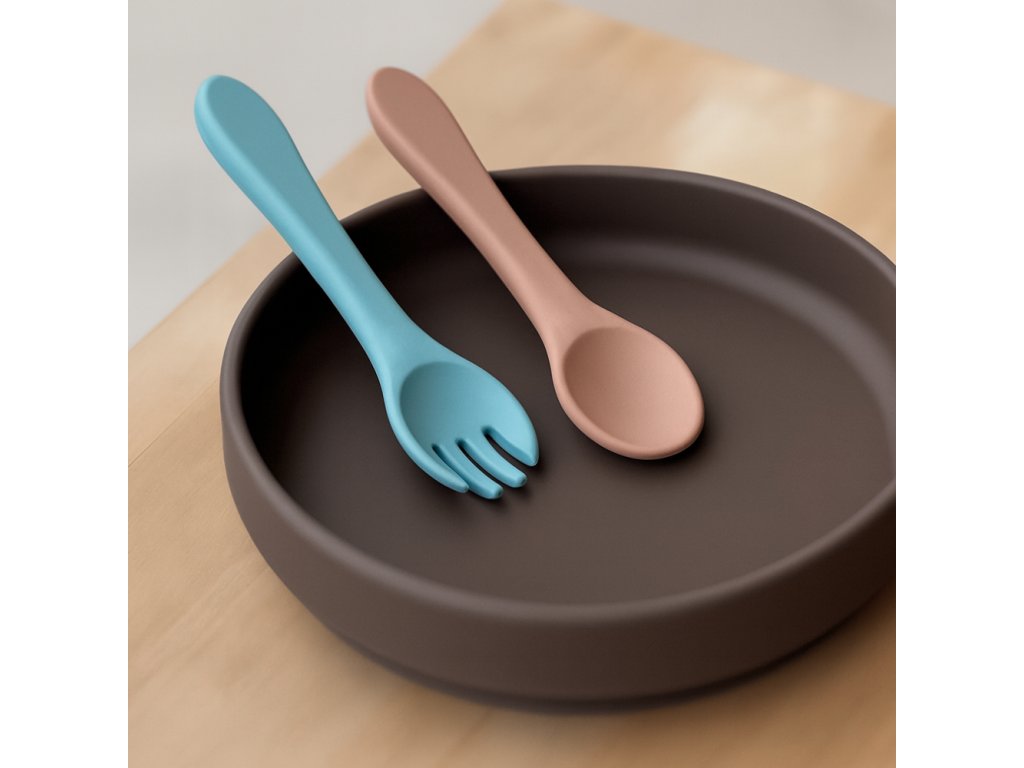 Súprava pozostávajúca z vidličky a lyžičky je celá vyrobená z potravinárskeho silikónu bez obsahu BPA. Vďaka tomu môže vaše dieťa jesť príborom teplé aj studené jedlá. Vďaka pružnému silikónu je príbor ideálny pre citlivé ďasná malého dieťaťa. Príbor je vhodný pre deti od 6 mesiacov, ktoré sa zoznamujú s pestrou stravou, a pre tie, ktoré sa už úspešne učia jesť samy. Zaoblené tvary a malé rozmery uľahčujú dieťatku ich uchopenie a tým aj papanie.