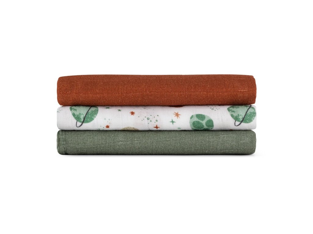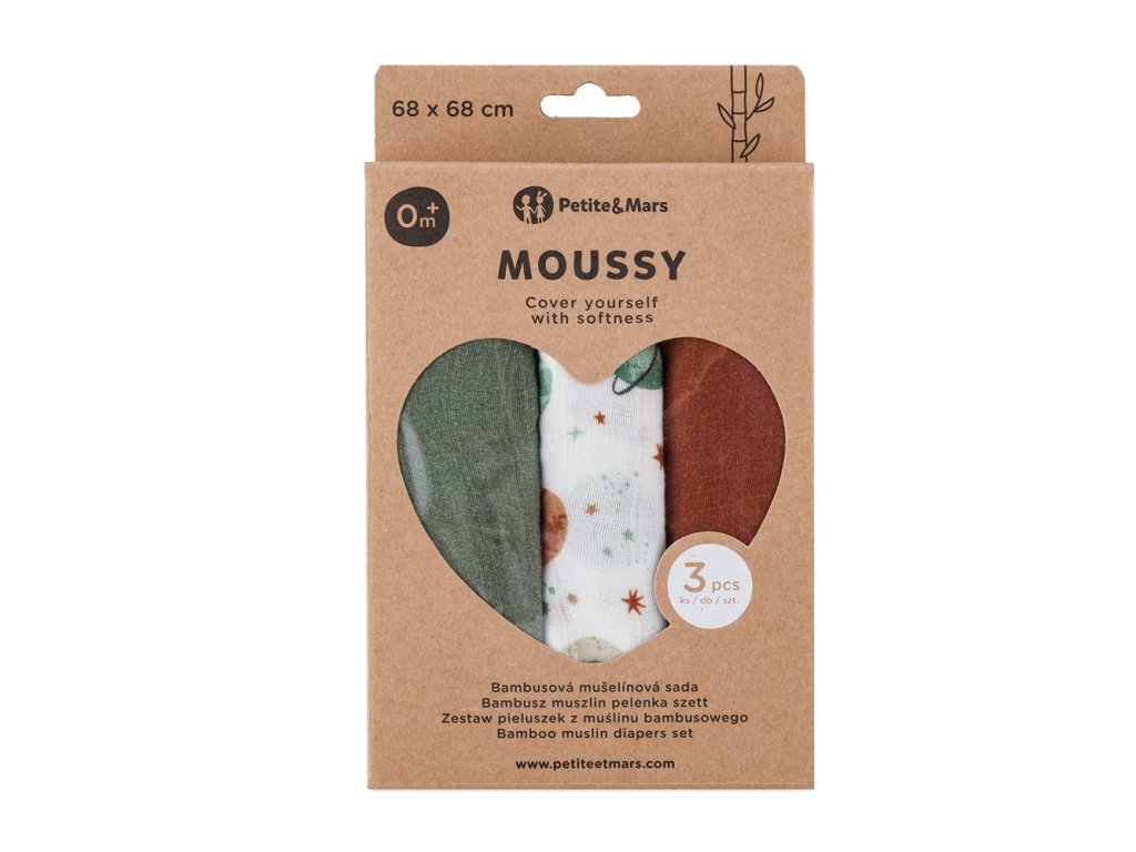 PETITE & MARS Sada plienok bambusová mušelínová 3ks Moussy Celestial Planets 68 x 68 cm