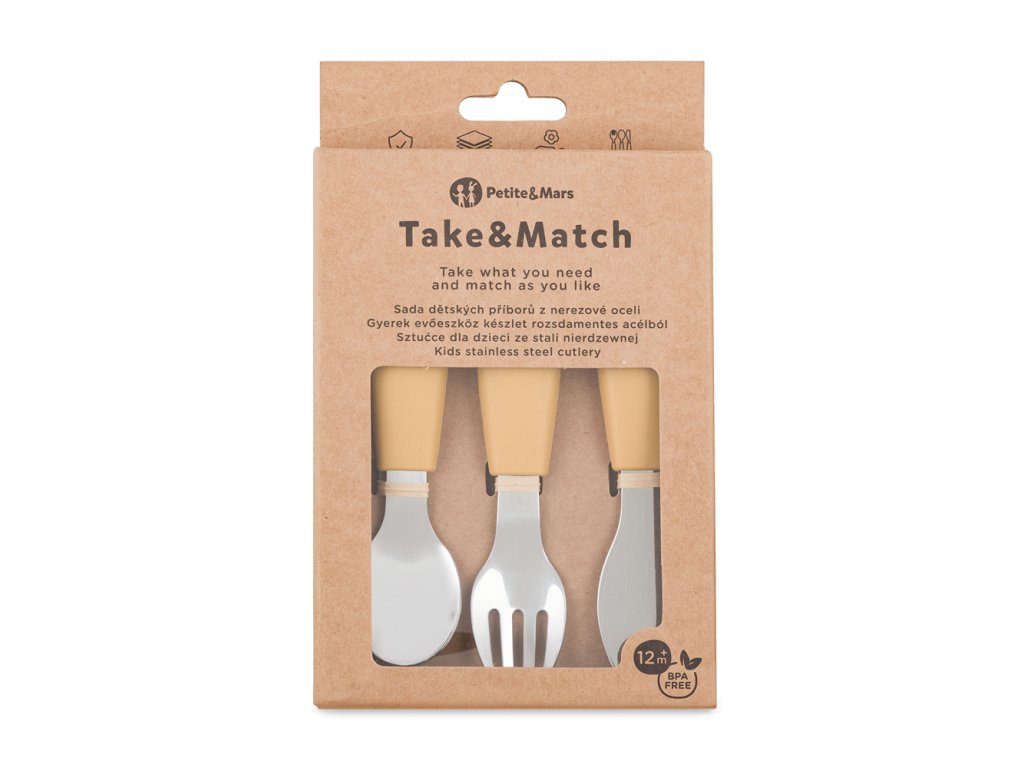PETITE&MARS Sada príborov s nerezovej ocele Take&Match Intense Ochre 12m+