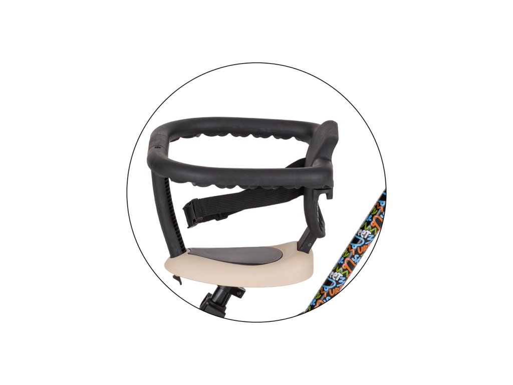 Bezpečnosť a pohodlie: Riadidlá s protišmykovými gumovými rukoväťami sú nastaviteľné, pedále sú odnímateľné a sedlo sa prispôsobí výške. Nastaviteľné bezpečnostné pásy zaručia stabilitu a istotu aj pri rýchlejšej jazde. Odolné gumové kolesá zabezpečujú hladkú jazdu na rôznych povrchoch, či už v dvoj- alebo trojkolesovej konfigurácii.