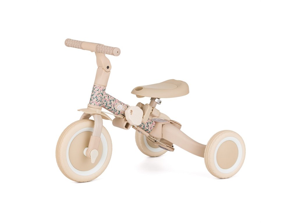 Multifunkčná trojkolka určená pre deti od 1,5 do 5 rokov alebo do 25 kilogramov je nielen dopravný prostriedok na presun a učenie sa rovnováhy, ale aj spoločník pre rastúce dieťa počas mnohých vývojových fáz. Vďaka premyslenej transformácii sa prispôsobí aktuálnym motorickým schopnostiam dieťatka – od trojkolky s asistenciou rodiča až po plnohodnotný bicykel s pedálmi.