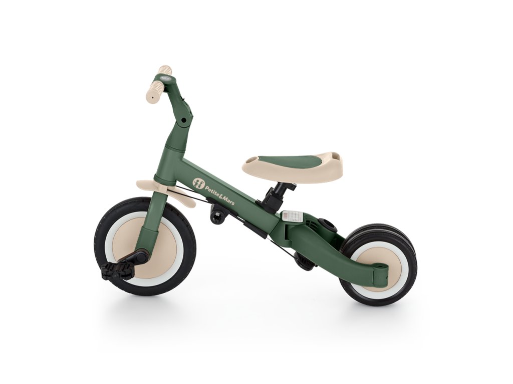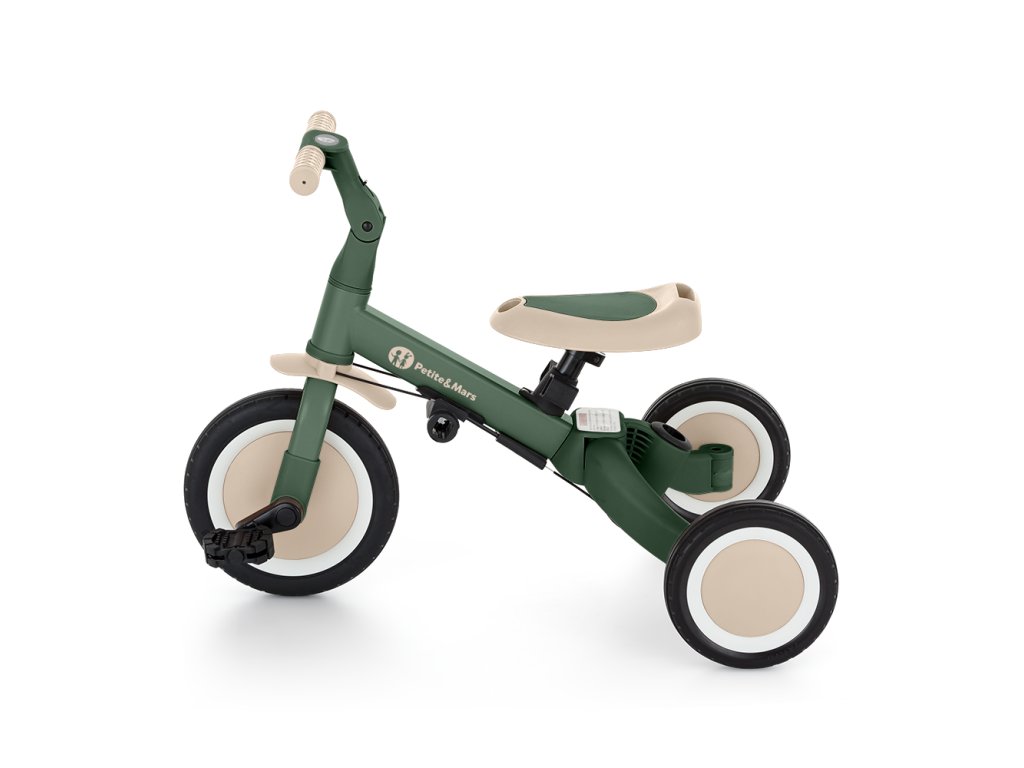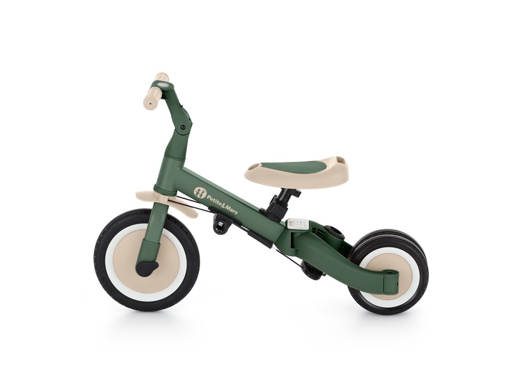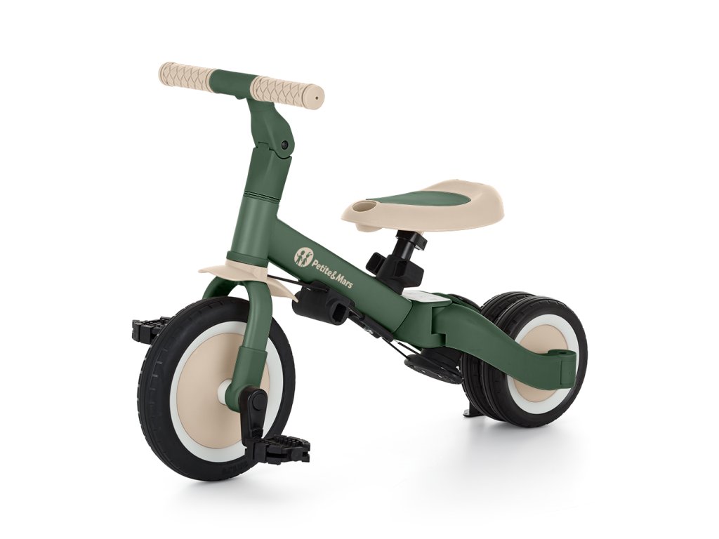Multifunkčná trojkolka určená pre deti od 1,5 do 5 rokov alebo do 25 kilogramov. Je to nielen dopravný prostriedok na presun a učenie sa rovnováhy, ale aj spoločník pre rastúce dieťa počas mnohých vývojových fáz. Premyslené menenie sa bicykla sa prispôsobuje potrebám dieřatka podľa toho, ako sa vyvíjajú jeho motorické schopnosti. Spočiatku je to trojkolka s možnosťou asistencie rodiča, zatiaľ čo konečná verzia je štandardný bicykel s pedálmi, bez akýchkoľvek ďalších podporných prvkov. Vďaka takýmto zmenám môžete pomôcť svojmu dieťaťu naučiť sa jazdiť na dvoch kolesách.