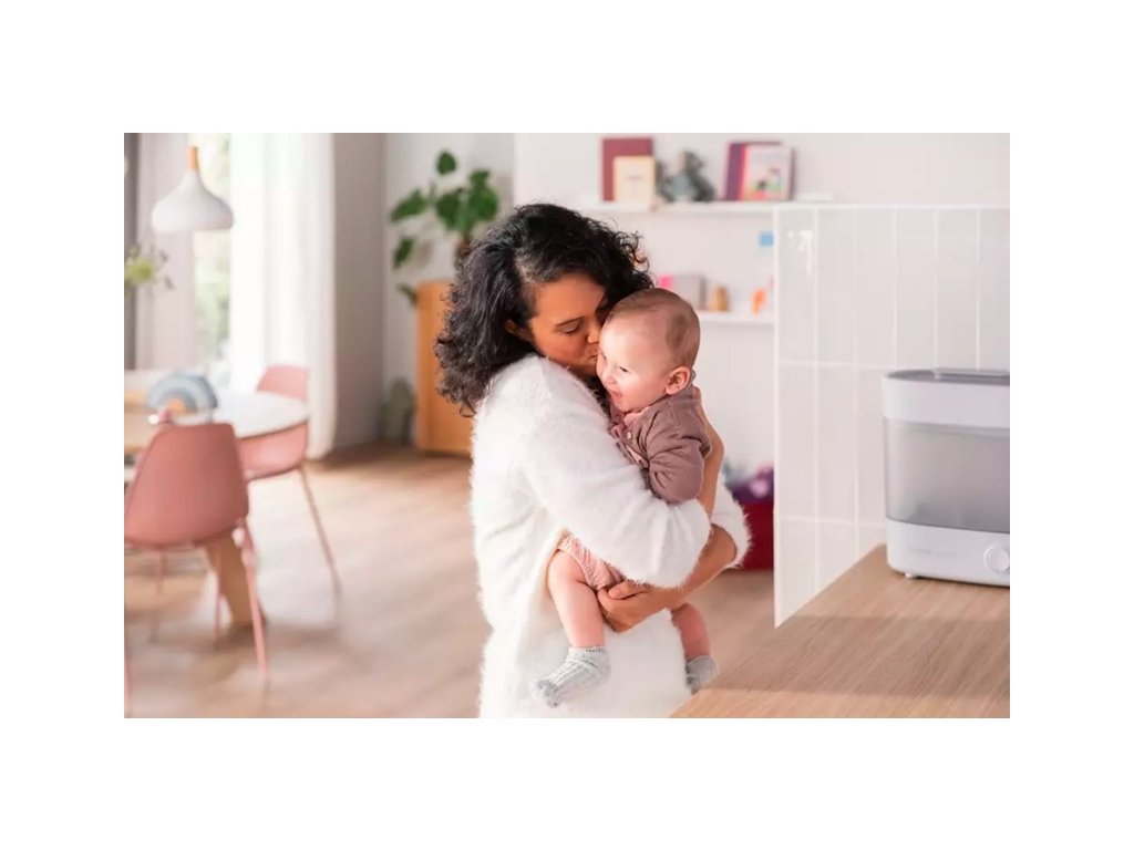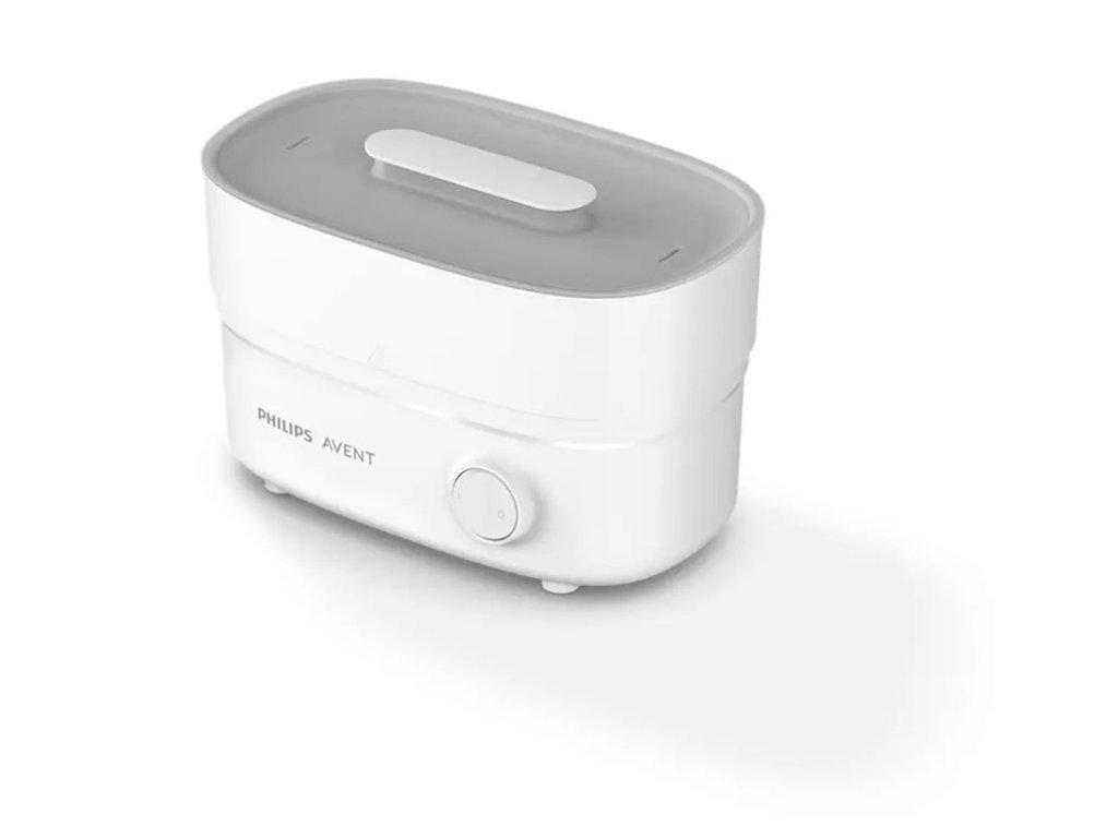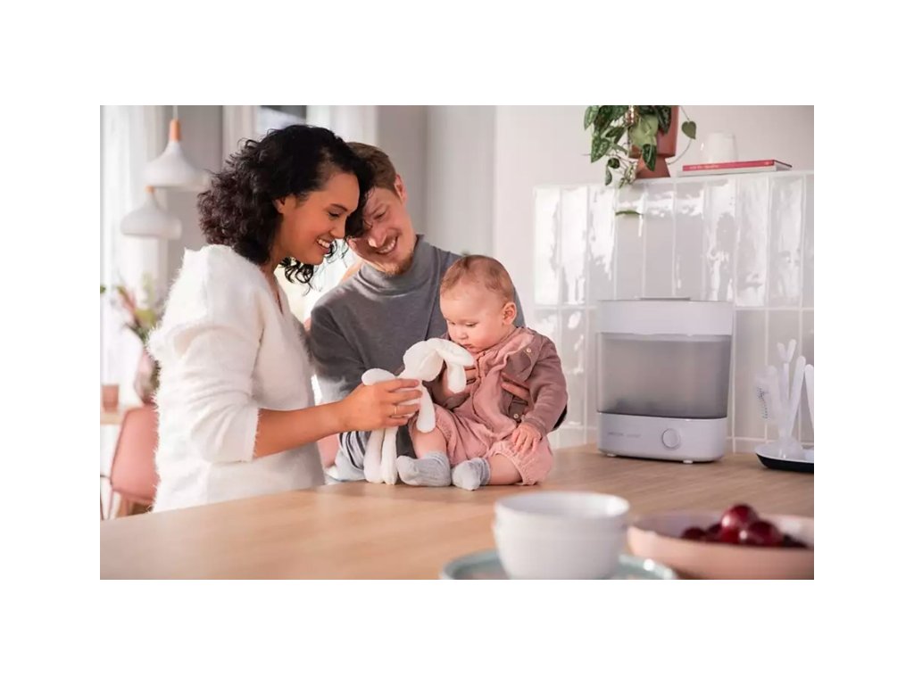 Vďaka prispôsobiteľnej veľkosti zaberie elektrický parný sterilizátor Philips AVENT v kuchyni minimálne množstvo priestoru a súčasne sa dokonale hodí pre predmety určené na sterilizáciu – či už je ich len zopár, alebo celá kopa.