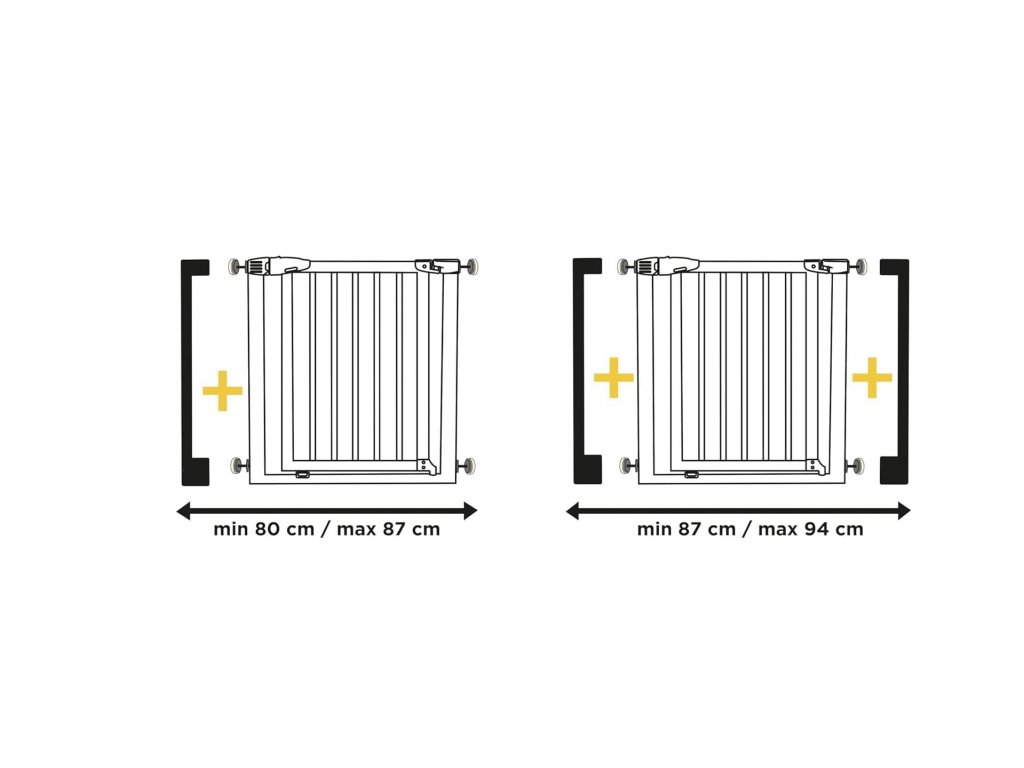 Rozšírenie zábrany Safety 1st Simply Close Metal & Wood umožňuje zábranu rozšíriť o 7 cm, aby ste ju prispôsobili väčšiemu otvoru.