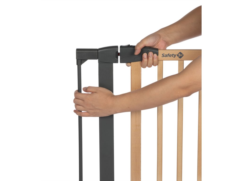 Safety 1st Simply Close Metal & Wood je zábrana v kombinácii kovu a dreva s jednoduchou inštaláciou bez vŕtania.Zábrana je vhodná do dverí či priestoru medzi stenami s rozmermi 73 cm až 80 cm a je možné ju s pomocou rozšírenia zábrany rozšíriť až na 87 cm (pri použití jedného rozšírenia) alebo až na 94 cm (pri použití dvoch rozšírení).