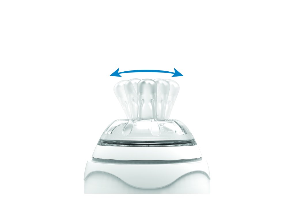 Plochý a dlhší tvar cumlíka uľahčuje prirodzený peristaltický pohyb jazyka. Je vysoko flexibilná a ohybný (360 °).
