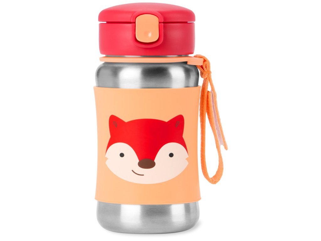 SKIP HOP Spark Style Fľaša so slamkou na vodu nerez Líška 12m+