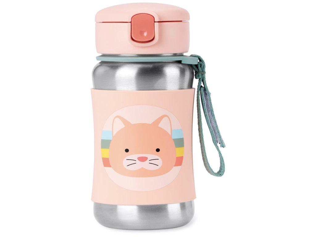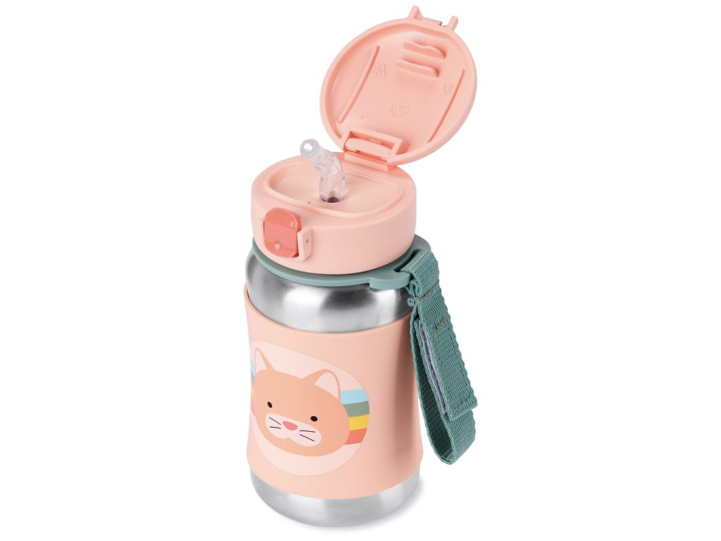 SKIP HOP Spark Style Fľaša so slamkou na vodu nerez Mačička 12m+