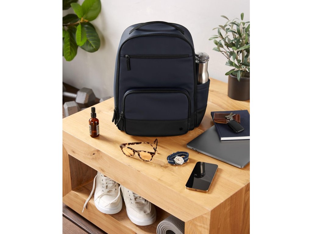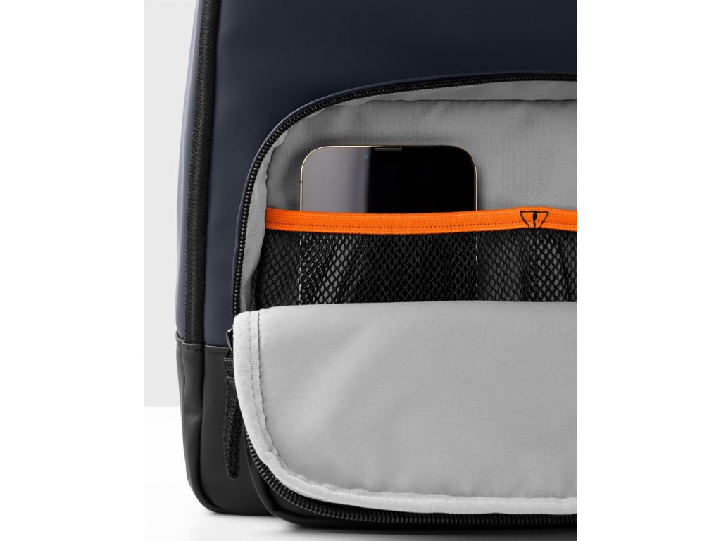 - Predné vrecko na zips a vnútorné sieťované vrecká.