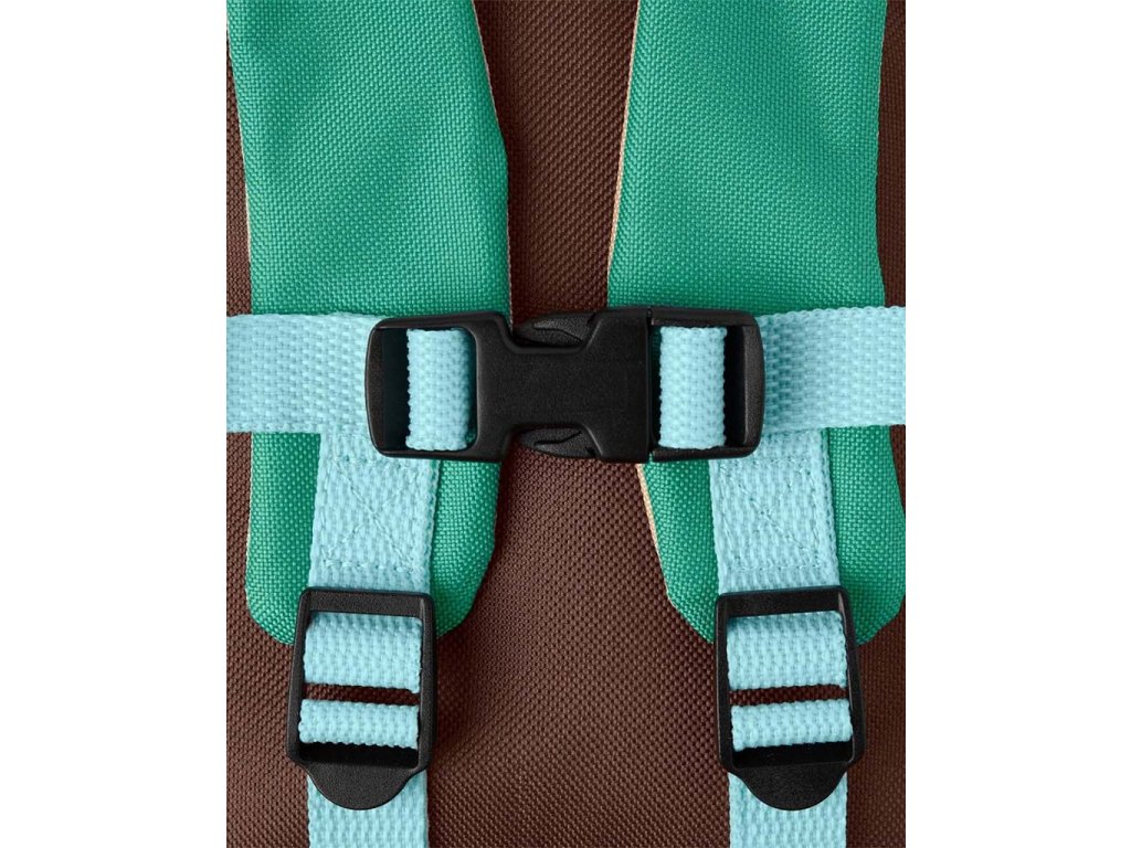 Upravte oba ramenné popruhy na ramená dieťaťa. Upnite hrudný pásik / zacvaknite sponu. Nastavte správnu dĺžku ramenných popruhov podľa postavy vášho dieťaťa. Podľa potreby pripnite bezpečnostný pásik pomocou striebornej karabínky, ktorú pripevníte k striebornému pútku v tvare "D".