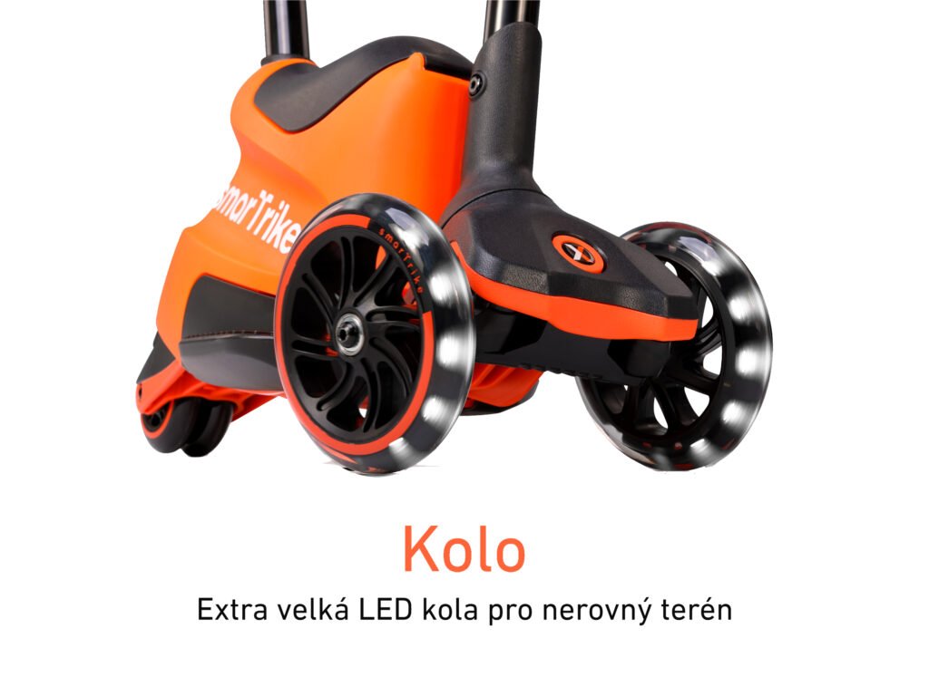 extra veľké predné LED kolesá pre hladkú jazdu na nerovnom teréne