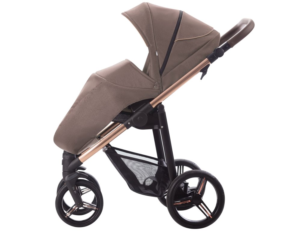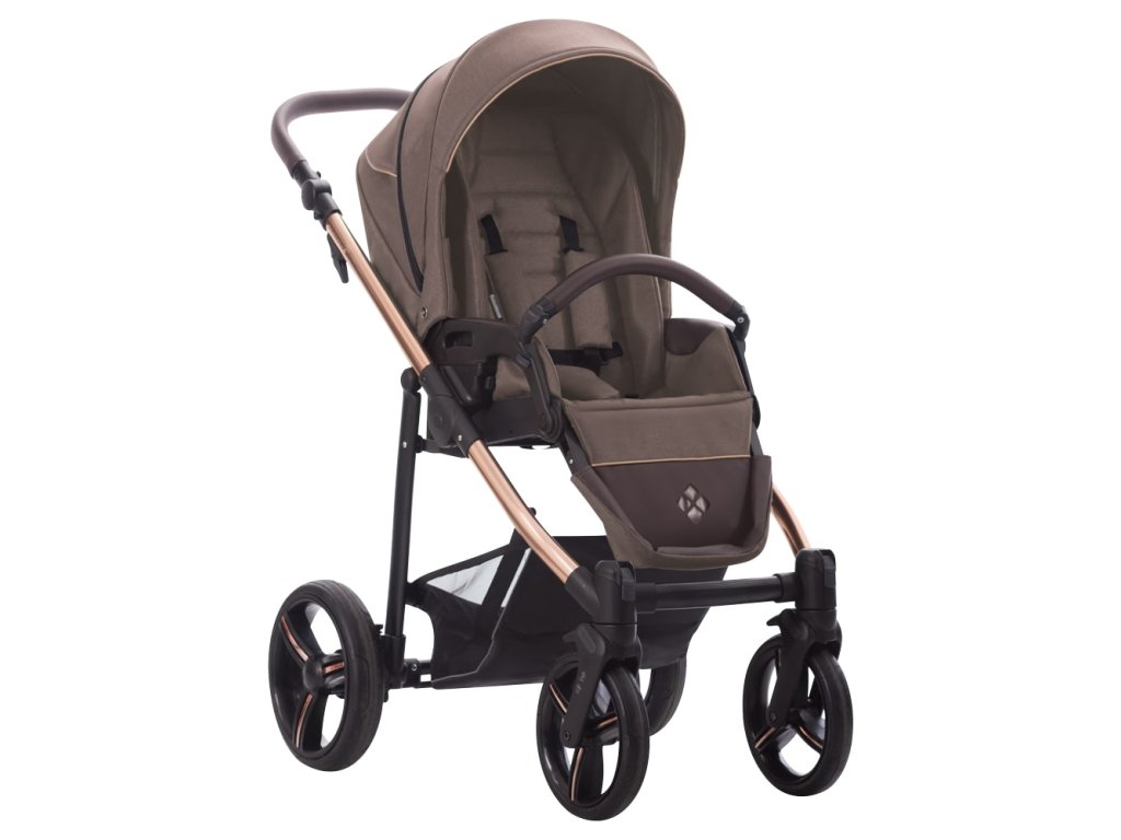Ľahký športový kočík s otočnou športovou sedačkou. Novodobá ľahká hliniková konštrukcia v zaujímavej medenej farbe s prednými otočnými kolesami zaistí ľahkú manipulácia s kočíkom. Použitím autosedačky je kočík využiteľný už od narodenia. Kočík je možné zložiť aj so športovou sedačkou.