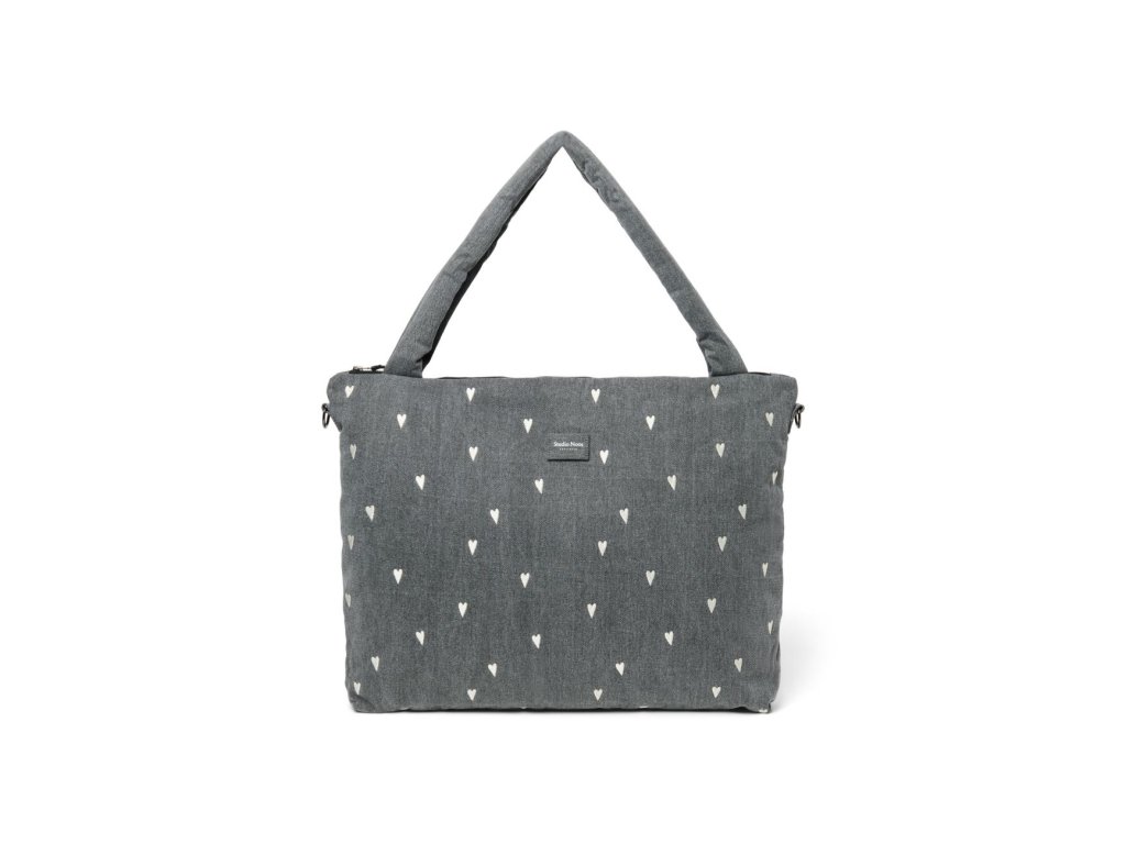 STUDIO NOOS - Denim DIAPER BAG - prebalovacia taška | Grey Hearts
