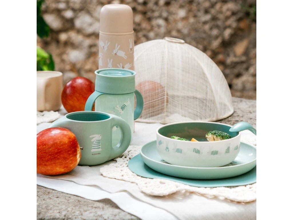 Hrnček má držadlá vhodné pre malé detské ruky, ktoré umožňujú jednoduché uchopenie. Ušká sú kompatibilné so všetkými dojčenskými fľašami Suavinex, okrem radu Zero Zero a fliaš so silikónovou fľašou z kolekcie Colour Essence.