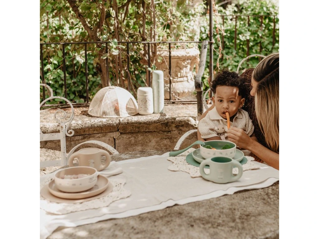 Sada je ľahká, jednoducho ovládateľná a ideálna pre malé detské ruky, takže ju dieťa môže používať aj samostatne. Odolný, nerozbitný materiál spolu s premyslenými tvarmi a zaoblenými hranami zabezpečujú maximálnu bezpečnosť a pohodlie pri každom jedle.