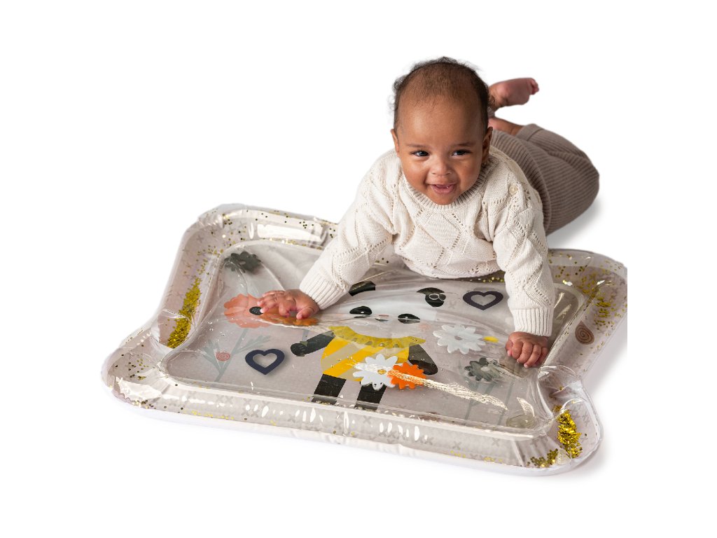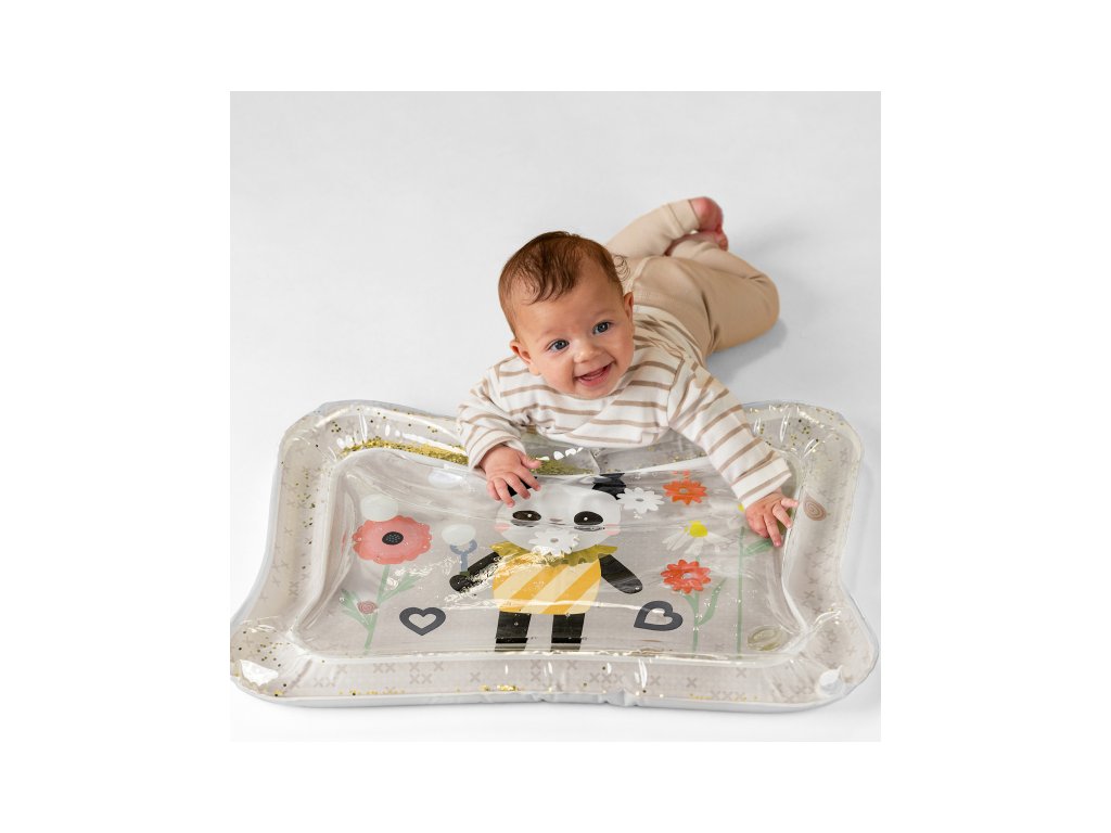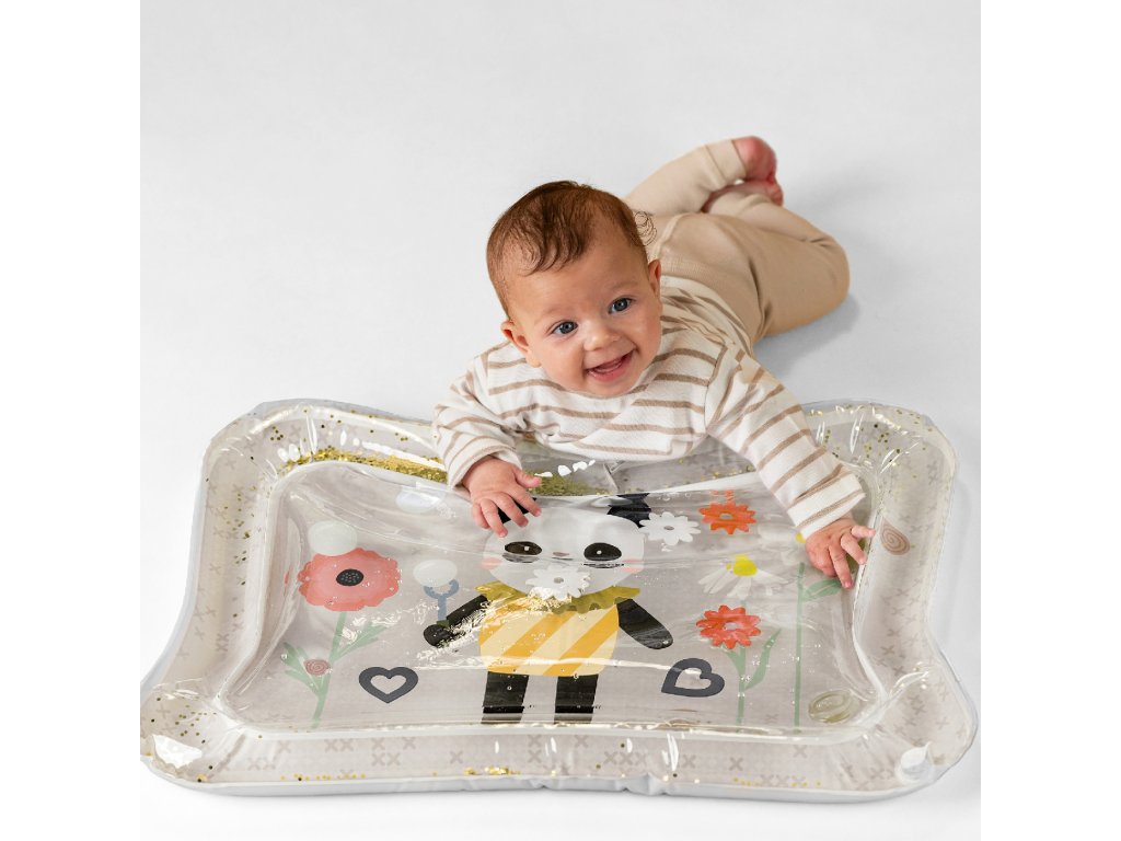 Premeňte čas na brušku vášho dieťaťa na dobrodružstvo plné zábavy a zmyslového skúmania! Táto mäkká vodná podložka s plávajúcimi hračkami zaujme každé bábätko a pomáha pri posilňovaní svalov aj rozvoji zraku a motoriky.