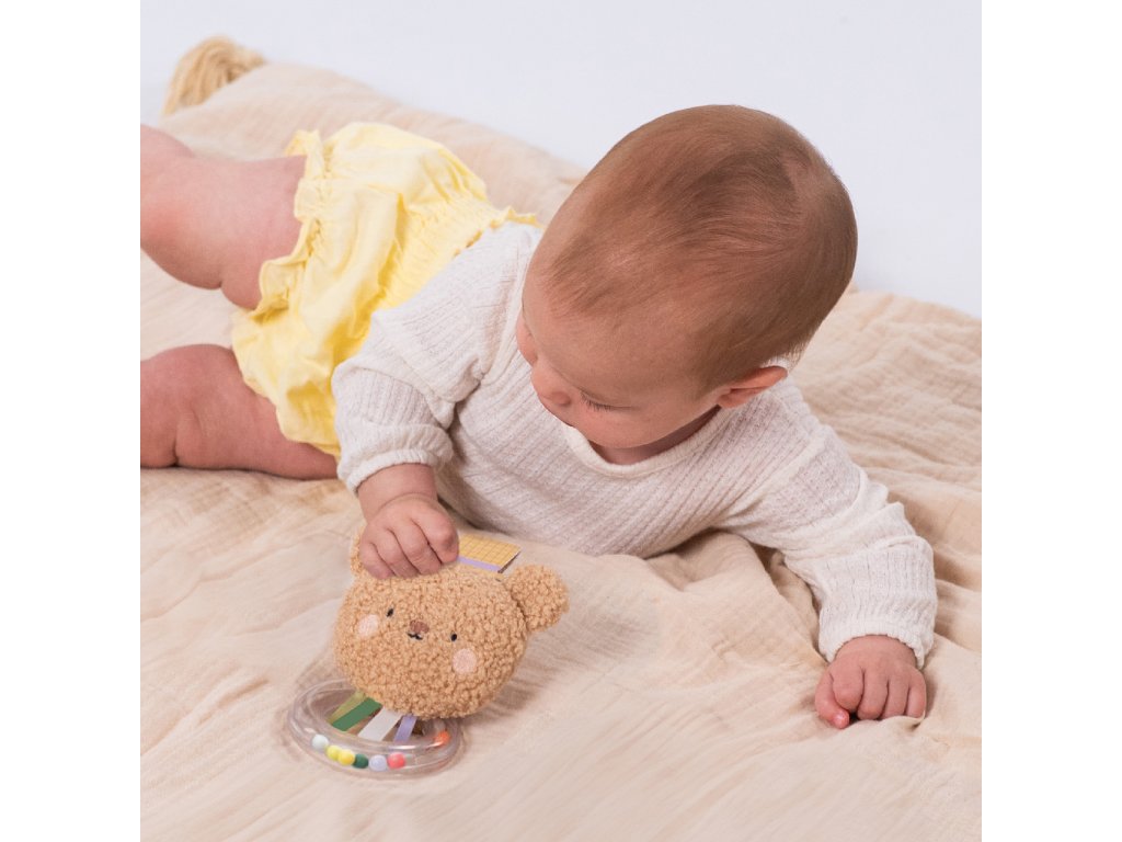 Hrkálku tvorí mäkká plyšová hračka v tvare rozkošného medvedíka Brendona a priehľadný plastový krúžok naplnený farebnými korálkami. Rôzne tvary a povrchy hračky podnecujú dieťa k skúmaniu rukami aj ústami a pomáhajú rozvíjať jemnú motoriku a zmysly dieťaťa.