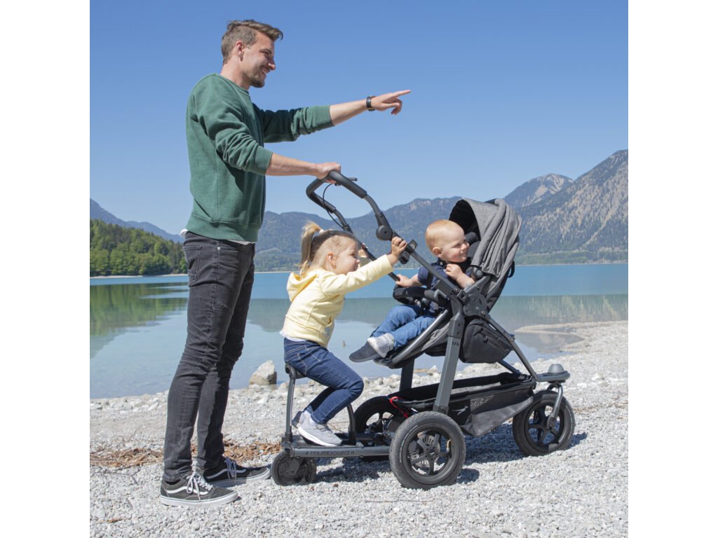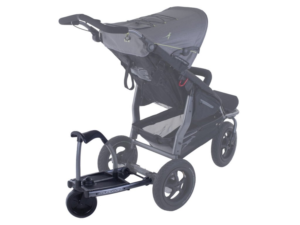 Jednoducho sa uchycuje na kočík a zároveň ho dokážete ľahko odpojiť. Miesto na sedenie je možné zložiť a používať Multiboard len ako stúpadlo.