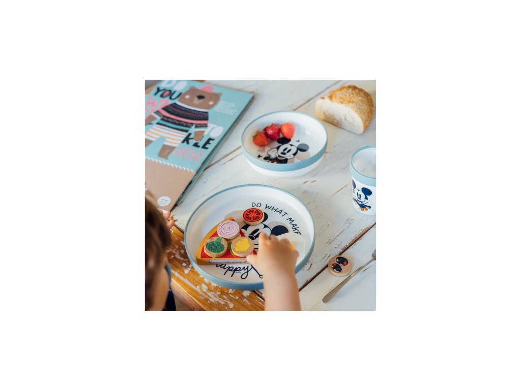 Veselý a farebný dizajn s motívom obľúbenej Mickey vzbudí u dieťaťa zvedavosť a spríjemní čas strávený pri jedle. Každá časť je ľahko uchopiteľná, čím podporuje učenie samostatnosti. Materiály sú bezpečné, odolné a ľahko umývateľné, ideálne na každodenné používanie doma aj na cestách.
