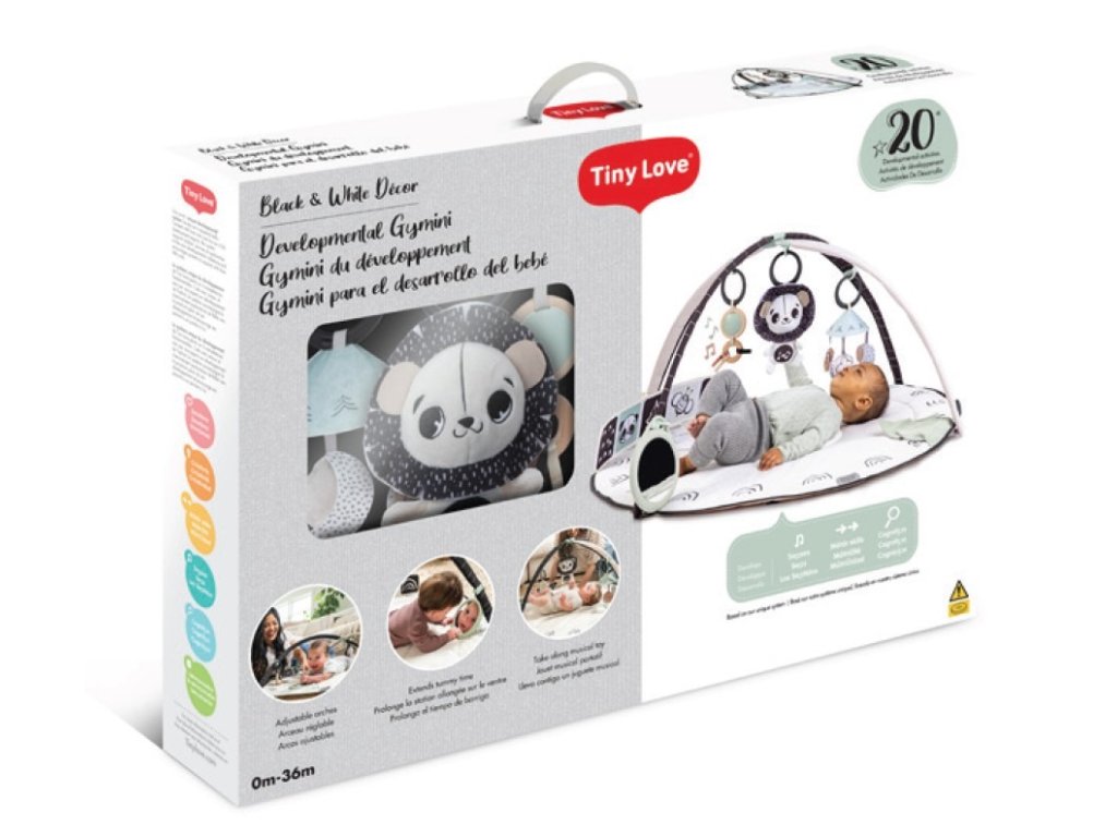 Hracia deka s hrazdou Tiny Love Gymini Black & White v unikátnom čierno-bielom prevedení, ktoré upúta pozornosť dieťaťa už od narodenia, ponúka rôzne aktivity na zabavenie a stimuláciu zmyslov dieťaťa.