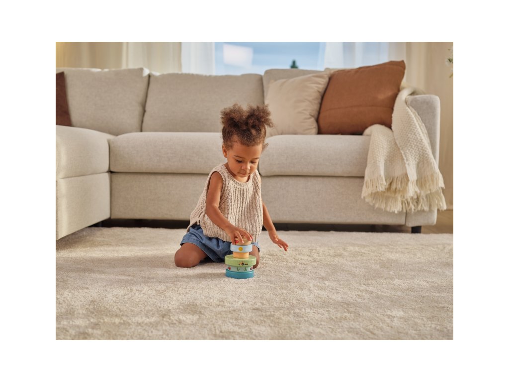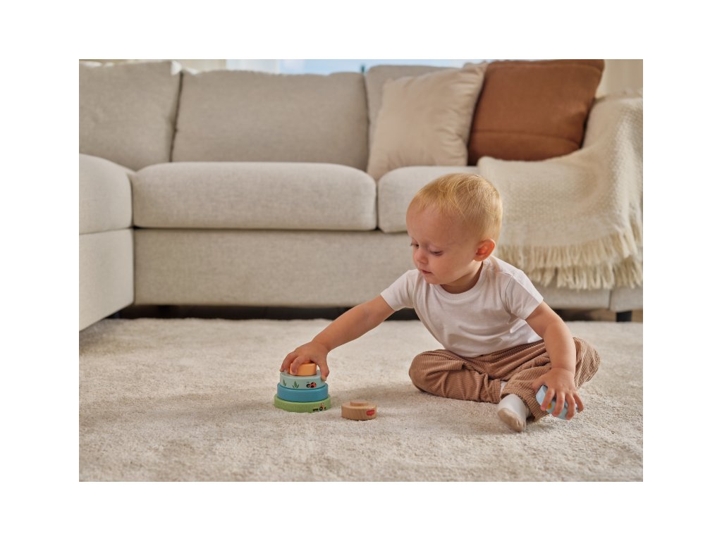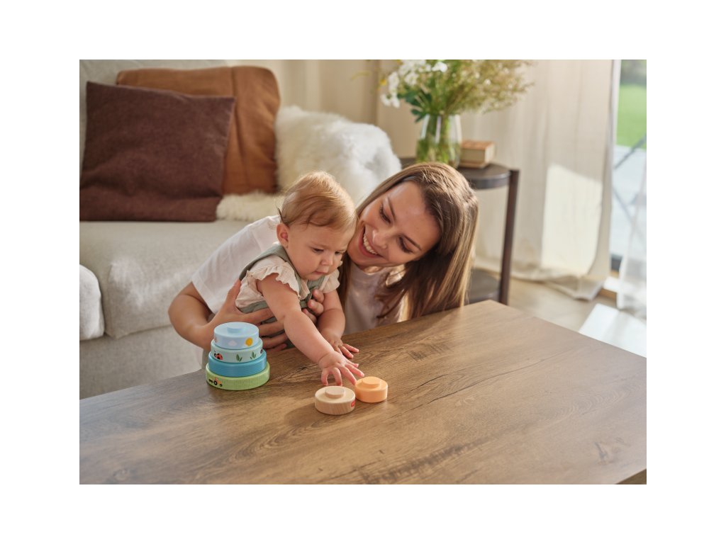Drevené nasadzovacie krúžky Tiny Love ponúkajú rôzne možnosti hrania - deti ich môžu nasadzovať a stavať do veže, triediť podľa veľkosti, kotúľať s nimi a postupne objavovať a rozlišovať farby, veľkosti a jednoduché súvislosti. Krúžky s krásnou potlačou motívov zo života na farme sú ľahké a dobre sa držia aj malými detskými ručičkami.Hračka prirodzene rozvíja jemnú motoriku, koordináciu ruka-oko aj prvé logické myslenie.