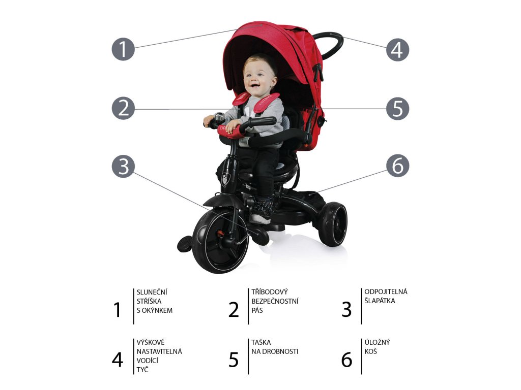 striešky, hrazdy, predné opierky a pedálov umožní dieťaťu lepší pôžitok z