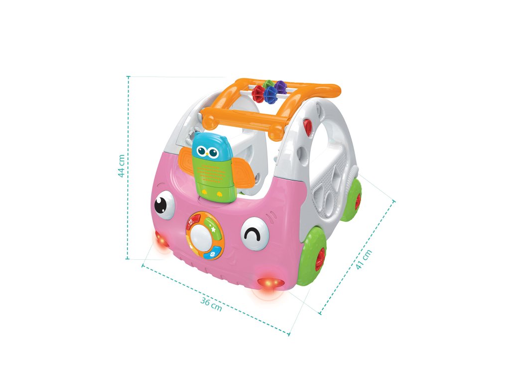 Roztomilé chodítko v tvare autíčka bezpečne prevedie dieťa prvými krôčikmi. Od 6 mesiacov slúži ako interaktívna hračka. Na boku chodítka sú umiestnené aktivity kocky, ktoré rozvíjajú motoriku a fantáziu. Ďalej je chodítko vybavená skladačkou či počítadlom. Súčasťou je aj interaktívny kľúč s tlačidlami, vďaka ktorým autíčko vydáva zvuky a svetelné efekty.