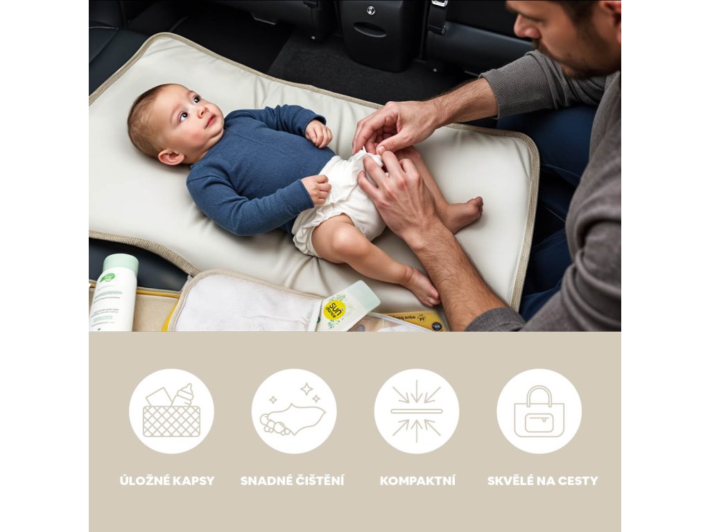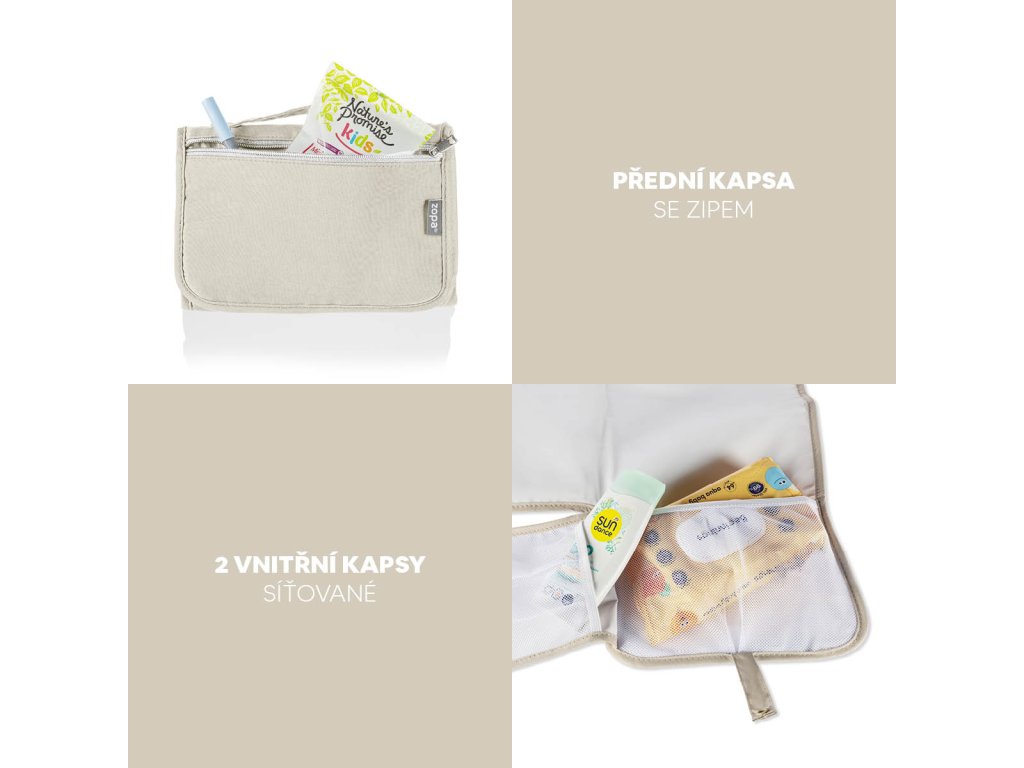 Kompaktná prebaľovacia podložka s tromi vreckami, ktorá uľahčí prebaľovanie na cestách. Ľahko sa čistí, nezaberá miesto a všetko potrebné máte vždy po ruke.Cestujete s bábätkom a nechcete sa vzdať pohodlia ani hygieny? Cestovná prebaľovacia podložka Zopa je navrhnutá tak, aby spĺňala požiadavky moderných rodičov na praktickosť aj štýl. Vďaka kompaktnému tvaru sa ľahko zmestí do tašky či kočíka a môžete ju mať stále poruke – nech vás deň zavedie kamkoľvek.