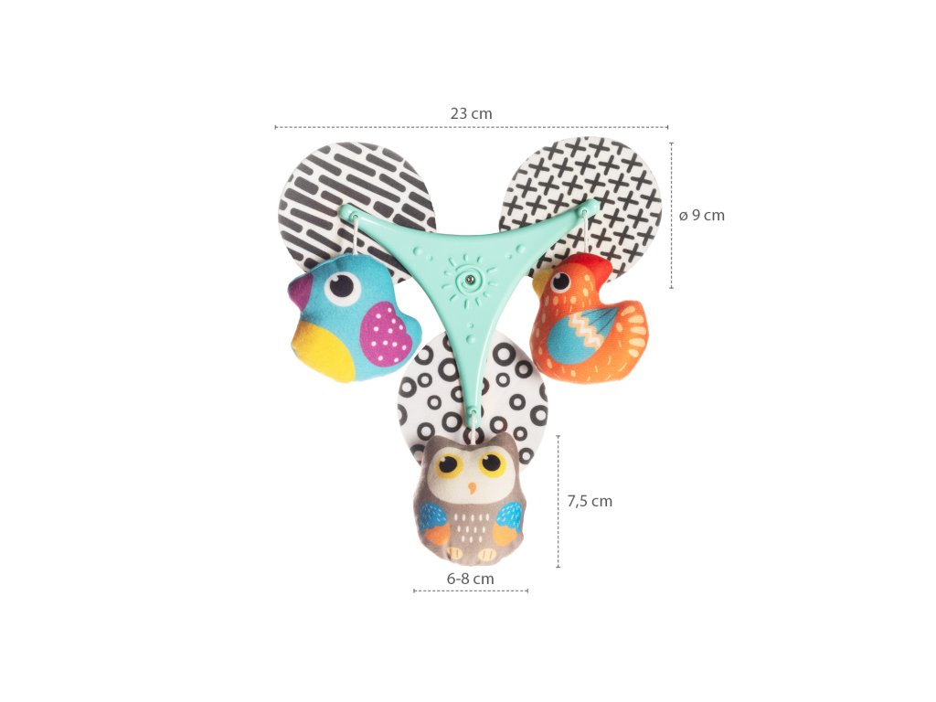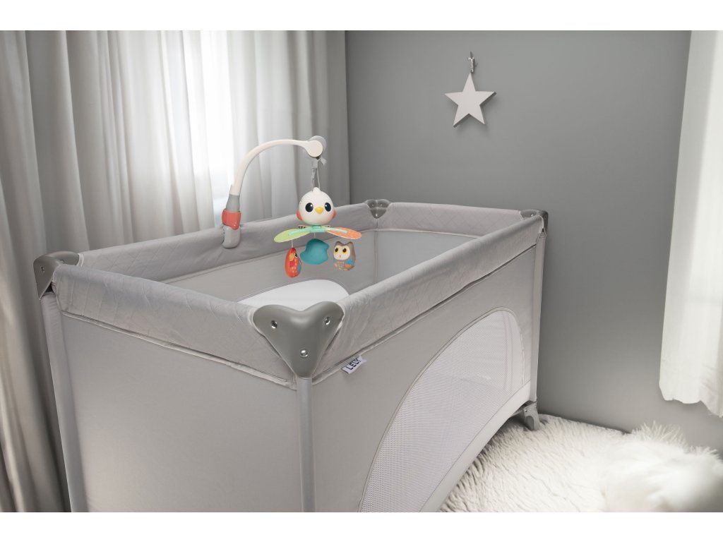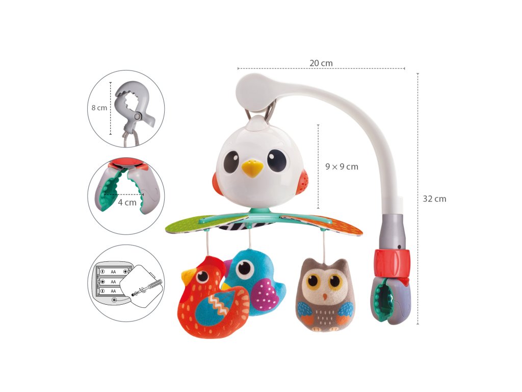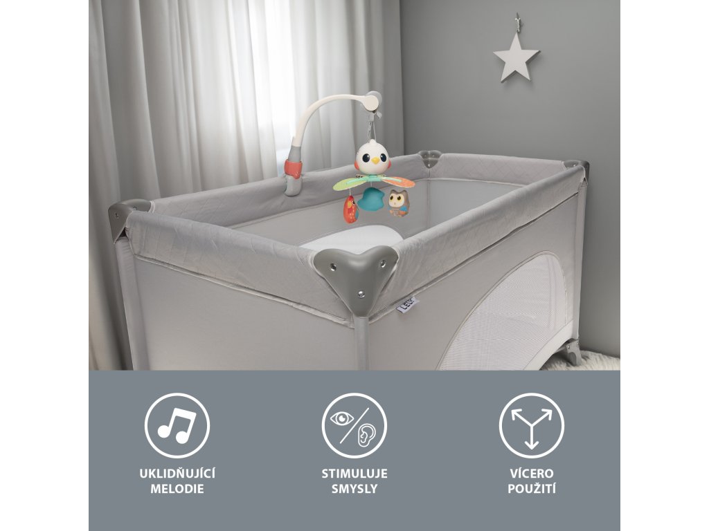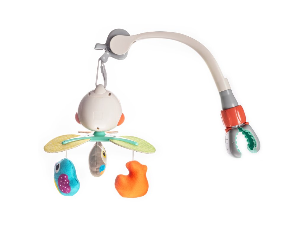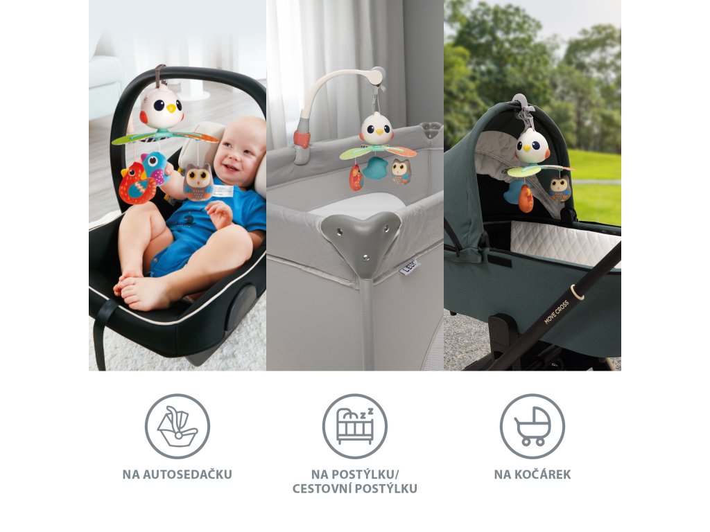rotujúcu hračku. S tromi spôsobmi uchytenia na autosedačku, postieľku alebo
